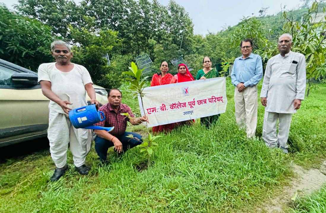 24 न्यूज अपडेट उदयपुर . एम.बी.कॉलेज पूर्व छात्र परिषद के सदस्यों ने आज ईसवाल की पहाड़ियों में राठौर रिसोर्ट के पास अमलतास , जामुन, आम व नीम के 25 पौधे लगाकर वृक्षारोपण किया । वृक्षारोपण करने वालों में परिषद के महासचिव शांतिलाल भंडारी, कोषाध्यक्ष राजेन्द्र खोखावत, मीडियो प्रभारी प्रोफेसर विमल शर्मा , बी एस राठौड़, एम पी व्यास , श्रीमती मंजू खोखावत सहित 15 सदस्य उपस्थित रहे। वृक्षारोपण के साथ ही राठौड़ रिजॉर्ट मे निवासरत माली को एक वर्ष तक इन रोपित वृक्षों की रखरखाव का जिम्मा सौंपा गया। Share this: Share on X (Opens in new window) X Share on Facebook (Opens in new window) Facebook More Email a link to a friend (Opens in new window) Email Share on WhatsApp (Opens in new window) WhatsApp Like this:Like Loading... Related Discover more from 24 News Update Subscribe to get the latest posts sent to your email. Type your email… Subscribe Post navigation गंगु कुंड से उबेश्वर महादेव तक की 19वीं कावड यात्रा 09 अगस्त को दो दिवसीय अखण्ड रामायण की हुई पुर्णाहूतिदिन भर रही भक्तों की भीड – महाआरती में उमडे भक्तगण मेनाल में रील्स बनाने झरने में उतरा युवक,हाथ से छूटी जिंदगी की सुरक्षा जंजीर, 150 फीट नीचे गिरकर मौत