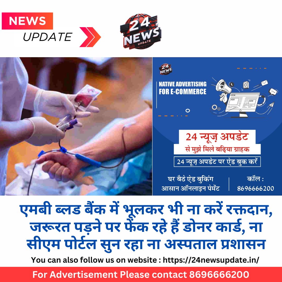 24 न्यूज अपडेट. उदयपुर। अगर आप उदयपुर के एमबी अस्पताल में रक्तदान करने के बारे में सोच रहे हैं तो जरा ठहर जाइये। कहीं आप कोई बहुत बड़ी भूल तो नहीं करने जा रहे हैं। पहले पूछ लीजिए कि डोनर कार्ड के बदले में रक्त जरूरत पर मिलेगा भी या नहीं। या फिर चक्कर पर चक्कर देने व घनचक्कर बनाने के बाद आपको इस बात के लिए प्रताड़ित तो नहीं किया जाएगा कि डोनर लेकर आइये, यहां कोर्ड नहीं चलते। कहीं डॉक्टर ब्लड बैंक मेंं आपके हाथ से डोनर कार्ड लेकर तो नहीं फेंक देगा और आप हतप्रभ होकर रह जाएंगे। और अगर आपने परिवार के दो-चार सदस्यों के साथ रक्तदान कर दिया व अगले ही दिन जरूरत पड़ गई तो आपसे कह दिया जाएगा कि ‘बार-बार डोनर कार्ड लेकर क्यों आ रहे हो’। आप रिक्वेस्ट पर रिक्वेट करते जाएं और वहां से आपको घोर निराशा हाथ लगें। बाद में पछतावा हो कि ब्लड डोनेट ही क्यों किया, नहीं करते तो आज कम से कम ये दिन ना देखना पड़ता। यही नहीं, इसके बाद आप यदि यह उम्मीद करें कि मुख्यमंत्री के पोर्टल 181 से आपको मदद मिल जाएगी तो भूल जाइये। वहां से केवल शिकायत का नंबर मिलता है। बार-बार फोन करने पर कहा जाएगा कि आपकी शिकायत संबंधित के पास भेज दी गई है। जबकि आपका मामला अर्जेंट है। दूसरी हैल्पलाइन से भी मदद नहीं मिले। अधिकारियों से फोन करने पर एक-दूसरे के नंबर देकर टरका दे ंतो आपकी हालत क्या होगी।
