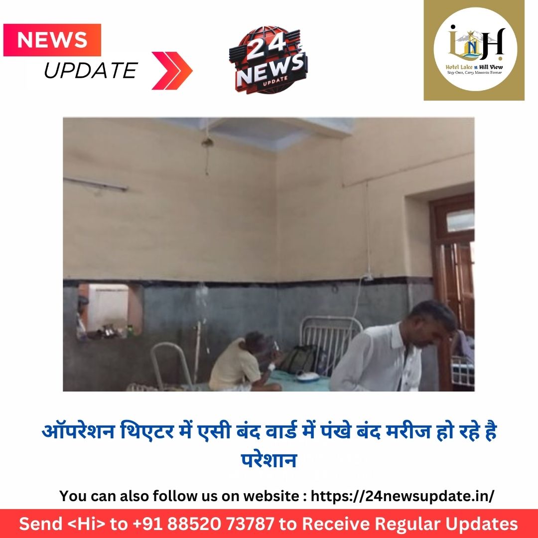 24 न्यूज़ अपडेट बीकानेर संभाग के सबसे बड़े हॉस्पिटल पीबीएम के वार्ड ए में ऑपरेशन थिएटर में एसी कई दिनों से बंद पड़ी है वहीं वार्ड A, B, C, D मे अनेक पंखे बंद पडे है