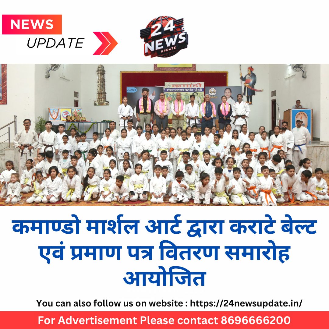 कराटे बेल्ट ग्रेडिंग में सफलता प्राप्त करने वालों में जिज्ञासा शर्मा, पहल कामरा, हंसिका शर्मा, निदयाना मेहता, विआना डांगी, आशी तनेजा, हेजल गोस्वामी, ध्याना शर्मा, प्रतिष्ठा शर्मा, हार्दिका शर्मा, वारी, चयांशी जैन, प्रिषा खत्री, सिद्धि चपलोत, तनिष्का चौहान, रादनियां रावल, रितवी रांका, याशी पंवार, यशस्श्री शर्मा, नित्या कालानी, वर्षणा बोहरा, क्रिषिका कोठारी, दृष्टि राजावत, जिआना जैन, माहीन पांचाल, दीमिक्षा पांचाल, कुसांगिनी शक्तावत, दीपिका राजपूत, संतोष चुंडावत, चंद्रप्रभा राठौर, पुष्पा सुथार, कायरा जांगिड़, रिचा शाकद्वीपी, पार्थ कलोनी, तन्मय शर्मा, ध्रुव जैन, लक्ष्यराज वैष्णव, मार्विन जैन, पेरिंन जैन, दिव्यांश नेन, अंगद, शूवीर रतनावत, राजवीर जोशी, धनंजय राय सिंघानिया, मिहित कंठालिया, भव्यांश जैन, युधिष्ठिर शर्मा, रूद्र परिहार, रौनक दवे, हिदम पांचाल, ह्रिधान सुहालका, समर प्रताप सिंह शक्तावत, हिमांक जैन, नैनेश कटारा ने कराटे में येलो बेल्ट में सफलता प्राप्त कि, और यैलिनी शाकद्वीपी, मिशिका जैन, भूमि मेनारिया, कन्यका शर्मा, रियांशी वया, वाणी शर्मा, वंदना गुर्जर, मायरा मारू, रिद्धिमा छिपा, गौरवी जैन, शांभवी शर्मा, हीनाया जैन, नव्या जैन, पाखी जैन , शानवी मोगरा, तनिष्क मेनारिया, अभिषेक पटेल, मौर्या सुराणा, रेयांश जैन, वर्णित शर्मा, जैनिल जैन, निलेश कुमार, निवान छाजेड़, विहान त्रिवेदी, नैतिक स्वामी, अंगद वशिष्ठ, ने कराटे में ऑरेंज बेल्ट में सफलता प्राप्त कि, इशिका जैन, हृदय शर्मा, प्रयान दोषी, जयंत डांगी, लक्ष्यराज शर्मा, अंशिका अग्रवाल, तनिष्क अग्रवाल, ने कराटे में ग्रीन बेल्ट में सफलता प्राप्त कि, हर्षित साहू, अर्श मलारा ने कराटे में ब्लू बेल्ट, साक्षी डांगी ने कराटे में ब्राउन बेल्ट प्रथम, धनिष्ठा पामेचा, आशवी पोखरणा, निमित्त पामेचा, ने कराटे में ब्राउन बेल्ट द्वितीय, और अभिजीत शर्मा, काव्य जैन ने कराटे में ब्राउन बेल्ट तृतीय में सफलता प्राप्त कि इसमें 54 येलो बेल्ट, 26 ऑरेंज बेल्ट, 7 ग्रीन बेल्ट, 2 ब्ल्यू बेल्ट और 6 ब्राउन बेल्ट इस तरह कुल 95 कराटे विद्यार्थियों ने कराटे बेल्ट डिग्री में सफलता हासिल की। कराटे विद्यार्थियों ने कराटे मार्शल आर्ट में विविध कला बेसिक पंच, ब्लाक एवं एडवांस्ड किक, सीक्वेंस, कांबिनेशन, टेक्निक, काता व कुमिते, स्किल टेस्ट और शारीरिक दक्षता मैं कमांडो मार्शल आर्ट अकादमी द्वारा प्रशिक्षण प्राप्त कर इन सभी द्वारा सर्वश्रेष्ठ प्रदर्शन करने और सफल होने पर सभी को कराटे बेल्ट और प्रमाण पत्र से सम्मानित किया गया। कराटे बेल्ट सेरेमनी समारोह एवं मार्शल आर्ट एवं योगा प्रदर्शन कार्यक्रम का संचालन कमांडो मार्शल आर्ट एंड फिटनेस एकेडमी के निदेशक एवं मुख्य प्रशिक्षक किशन सोनवा