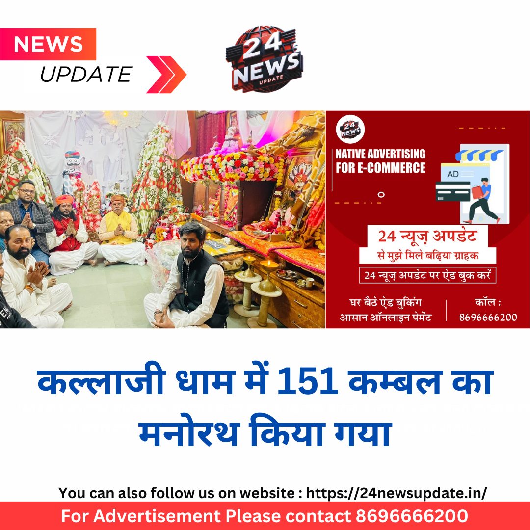 24 न्यूज़ अपडेट उदयपुर। उदयपुर सम्राट नगर बोहरा गणेश जी स्थित श्री काली कल्याण गातोडज़ी धाम पर रविवार को 151 कम्बल का मनोरथ किया गया। इस अवसर पर अखिल भारतीय कल्लाजी सम्प्रदाय एवं सर्व सम्प्रदाय संत संस्थान के राष्ट्रीय कोषाध्यक्ष और धाम के महंत नारायण दास वैष्णव ने बताया कि जो$गमाया जी एवं लोक देवता श्री कल्लाजी राठौड़ और गातोडज़ी महाराज का कम्बलों से विशेष शृंगार किया गया।महंत ने बताया की सभी 151 कम्बलों को जरूरतमंदो लोगों तक पहुँचाया जाएगा। इसके साथ दोपहर 2:15 बजे महाआरती की गई जिसमें स्वामी चतुर्भुज हनुमान धाम से सर्व सम्प्रदाय संत संस्थान के अध्यक्ष महंत इन्द्रदेव दास, नरेन्द्र दास वैष्णव,नकुल सिंह जड़ोन,प्रवीण दोषी,सतीश परिहार,हिमांशु, कल्पित, सुरेन्द्र आदि उपस्थित रहे। इसी के साथ धाम पर दर्शनाथियों का ताता लगा रहा एवं ठाकुर जी के मनमोहित छवि के दर्शन कर आशीर्वाद प्राप्त किया