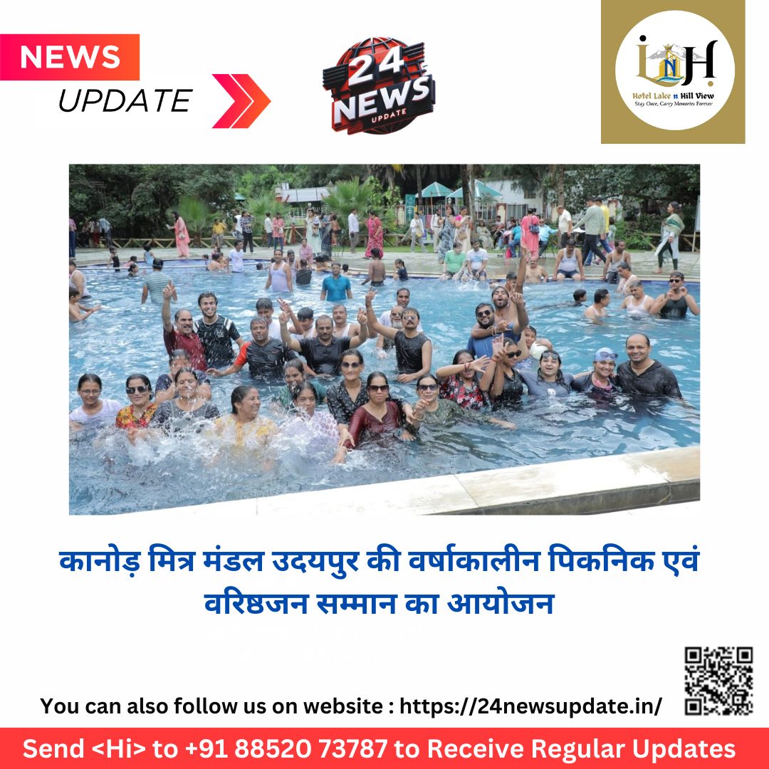 24 न्यूज़ अपडेट उदयपुर। कानोड़ मित्र मंडल उदयपुर की वर्षाकालीन पिकनिक प्राकृतिक एवं रमणीय स्थान काया गाँव के पास आराम बाग में करीब 350 सदस्यों की उपस्थिति में बड़े हर्षोल्लास से मनाई गयी। प्रात: से ही सदस्यों की बड़ी संख्या में उपस्थित रही। सभी ने दिनभर के आयोजन में आपसी परिचय, गेम्स एवं जल क्रीड़ा के साथ प्राकृतिक वातावरण का लुप्त लिया। दिन में वरिष्ठजन सम्मान का आयोजन किया गया। अध्यक्षता करते हुए कानोड़ के वरिष्ठ एडवोकेट एवं वयोवृद्ध समाजसेवी ख्यालीलाल बाबेल ने शिक्षा नगरी कानोड़ के मूल निवासियों से इतने बड़े संगठन को आपसी मिलन के साथ सामाजिक एवं धार्मिक कार्यक्रम करने का आह्वान किया। मुख्य अतिथि पेसिफिक विश्वविद्यालय के पूर्व निदेशक एवं कानोड़ जवाहर विद्यापीठ के संचालक नरेन्द्र धींग ने रोजगारोन्मुखी शिक्षा के बारे में जानकारी साझा करते हुए सभी को स्वरोजगार की और बढऩे को प्रेरित किया। विशिष्ट अतिथि आकाशवाणी, उदयपुर के निदेशक रविन्द्र डूंगरवाल थे।
