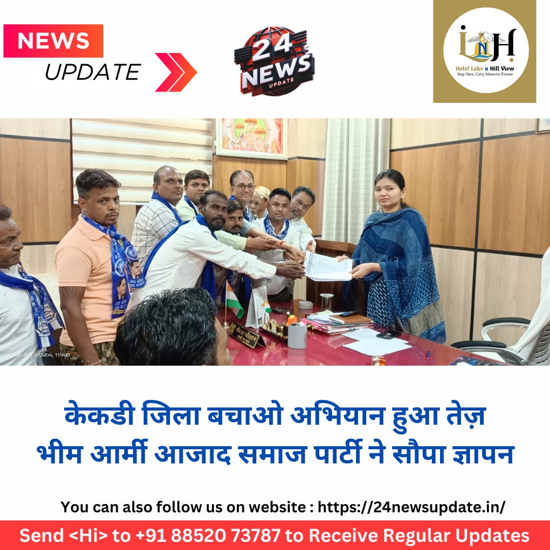 24 न्यूज़ अपडेट केकड़ी. राजस्थानः भीम आर्मी व आजाद समाज पार्टी ने केकड़ी जिले को यथावत बनाए रखने की मांग को लेकर जिला कलेक्टर श्वेता चौहान को ज्ञापन सौंपा। ज्ञापन में मुख्यमंत्री से अपील की गई है कि केकड़ी को पुनः जिला का दर्जा देकर यहां के निवासियों की मांग को पूरा किया जाए। ज्ञापन में बताया गया है कि केकड़ी क्षेत्रवासियों की लंबे समय से मांग थी कि केकड़ी को जिला बनाया जाए, जिसके लिए क्षेत्रवासियों ने कई बार संघर्ष और आंदोलन किए। सभी विचारधारा के लोगों और आम जनता के सहयोग से केकड़ी को जिला बनाने की मंजूरी मिली थी। ज्ञापन में कहा गया कि केकड़ी जिला सभी मापदंडों को पूरा करता है और इसे यथावत रखना अत्यंत आवश्यक है।