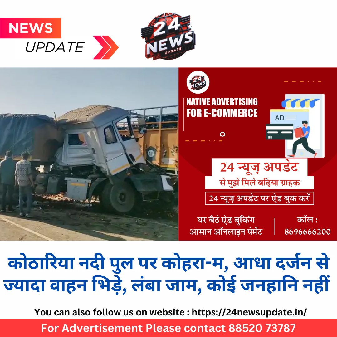 24 न्यूज अपडेट. भीलवाड़ा। भीलवाड़ा में आज कोहरे का कहर देखने को मिला। कोहरे के कारण हुए हादसे में भीलवाड़ा अजमेर नेशनल हाईवे पर कोठारी नदी की पुलिया परएक के बाद एक दर्जन से अधिक वाहन आपस में ही टकरा गए। हादसे के बाद हाईवे पर लंबा जाम लग गया। हाइवे एंबुलेंस और पुलिस मौके पर पहुंची और लोगों को इलाज के लिए भिजवाया व लंबा जाम खुलवाया है। मामला मांडल थाना क्षेत्र के भीलवाड़ा अजमेर नेशनल हाईवे कोठारी नदी पुलिया पर आज सुबह घना कोहरा दिखाई दिया। हालत यह हो गई कि वाहन आपस में नहीं दिख रहे थे। करीब 9 बजे पुलिया के दोनों और विजिबिलिटी कम थी व वाहन धीरे धीरे ही चल रहे थे। लेनिक इसी दौरान एक ट्रक दूसरे से टकरा गया और उसके बाद पुलिया पर पीछे ही चल रहे करीबएक दर्जन से अधिक वाहन आपस में टकरा गए। हादसे के बाद मौके पर अफरा-तफरी का माहौल हो गया। हाईवे पर लंबा जाम लग गया। मांडल थाना प्रभारी संजय गुर्जर ने मोर्चा संभाला तथा जाम खुलवाया। हाईवे और 108 एंबुलेंस से घायलों को हॉस्पिटल पहुंचाया गया है। हादसे में कोई जनहानि नहीं हुई है। वाहनों को जरूर नुकसान पहुंचा है।