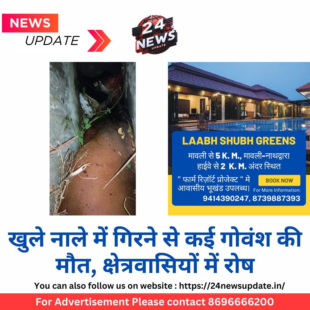 24 न्यूज़ अपडेट निम्हंबाहेडा।सराज सुवालका ने बताया कि चंदेरिया वार्ड नंबर 1 प्रताप कॉलोनी में नाले के ऊपर पत्थर नहीं रखें होने से नाले में कई बार गिरकर गौ माताओं की मृत्यु हो गई, जिससे क्षेत्र में रोष व्याप्त है।