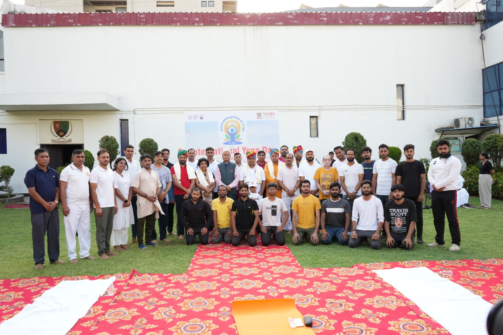 24 न्यूज अपडेट जयपुर। विश्वविद्यालय योग केंद्र, निम्स विश्वविद्यालय राजस्थान, जयपुर, के प्रो. चांसलर प्रोफेसर अमेरिका सिंह के निर्देशन में विश्वविद्यालय के छात्र- छात्राओं तथा संकाय सदस्यों की उपस्थिति में हर्षों उल्लास के साथ अंतर्राष्ट्रीय योग दिवस मनाया गया । योग दिवस कार्यक्रम के शुभारम्भ पर मुख्य अतिथि के रूप में डॉ. अल्का सिंह गुर्जर, राष्ट्रीय महामंत्री एवं पूर्व विधायक भारतीय जनता पार्टी को शॉल एवं साफा धारण करा कर स्वागत अभिनन्दन किया साथ ही सम्मानीय अतिथि के रूप में निम्स विश्वविद्यालय के डायरेक्टर डॉ. पंकज सिंह, श्री श्याम शर्मा, देहात जिला अध्यक्ष, भारतीय जनता पार्टी, श्री हनुमान पोसवाल, जिला परिषद् सदस्य, श्री तारा चंद चौधरी, जिला मंत्री, भारतीय जनता पार्टी, जयपुर सहित गणमान्य लोग उपस्थित रहे ।