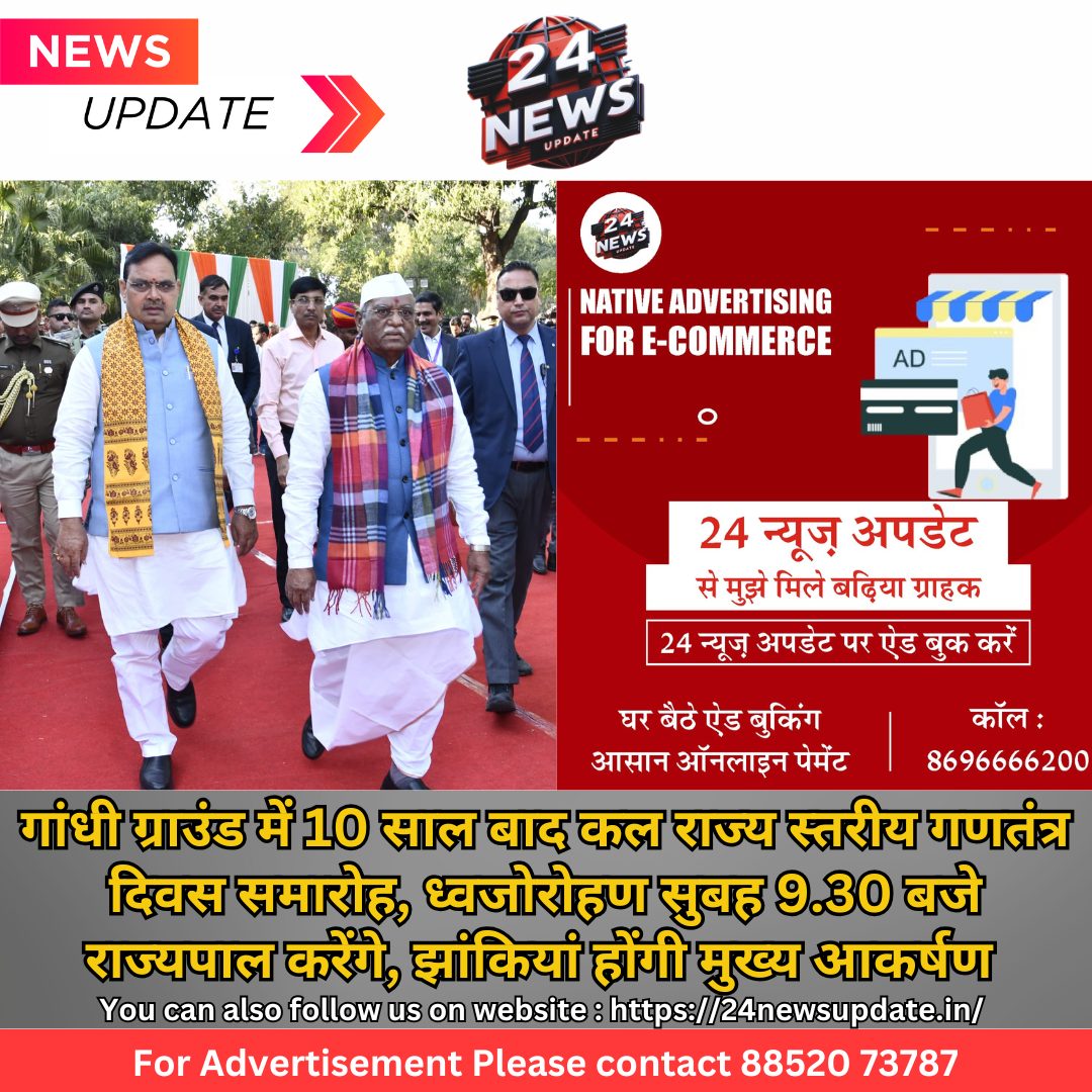 24 न्यूज अपडेट उदयपुर। 76 वां गणतंत्र दिवस समारोह में रविवार को राज्यपाल ध्वजारोहण करेंगे। इस अवसर पर मुख्यमंत्री सहित कई मंत्रीगण और विशिष्ट जन रहेंगे उपस्थित रहेंगे। शौर्य, बलिदान और भक्ति की धरा उदयपुर का महाराणा भूपाल स्टेडियम 10 सालों के अंतराल के बाद एक फिर राष्ट्रीय पर्व पर राज्य स्तरीय मुख्य समारोह का साक्षी बनने जा रहा है। 76वें गणतंत्र दिवस पर राज्यपाल हरिभाऊ किसनराव बागड़े महाराणा भूपाल स्टेडियम में आयोजित राज्य स्तरीय समारोह में ध्वजारोहण कर मार्च पास्ट की सलामी लेंगे। कार्यक्रम में मुख्यमंत्री भजनलाल शर्मा सहित कई मंत्रीगण एवं अतिविशिष्ट अतिथि भाग लेंगे।