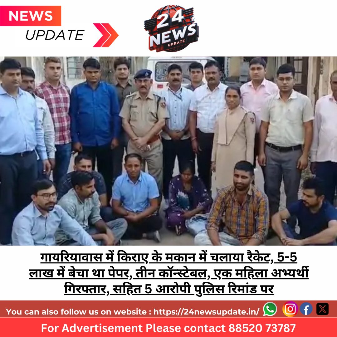 गायरियावास स्थित किराए के मकान में इस पूरे रैकेट को अंजाम दिया गया। कांस्टेबलों ने 5-5 लाख रुपये लेकर कुछ अभ्यर्थियों को लीक पेपर उपलब्ध कराया और परीक्षा से पहले उसे हल करवाया। इसी मकान में बाघपुरा निवासी महिला शारदा भील सहित 6 अन्य अभ्यर्थियों को भी पेपर सॉल्व करवाया गया।