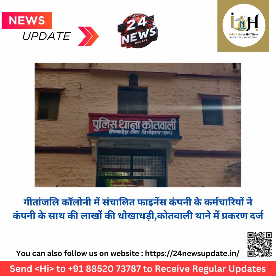 24 न्यूज़ अपडेट निंबाहेड़ा। नगर की गीतांजलि कॉलोनी के एक मकान में संचालित दिगंबर फाइनेंस कम्पनी के कर्मचारियों द्वारा कंपनी के साथ 20 लाख 73 हजार 772 रूपये की धोखाधड़ी करने का मामला सामने आया है।