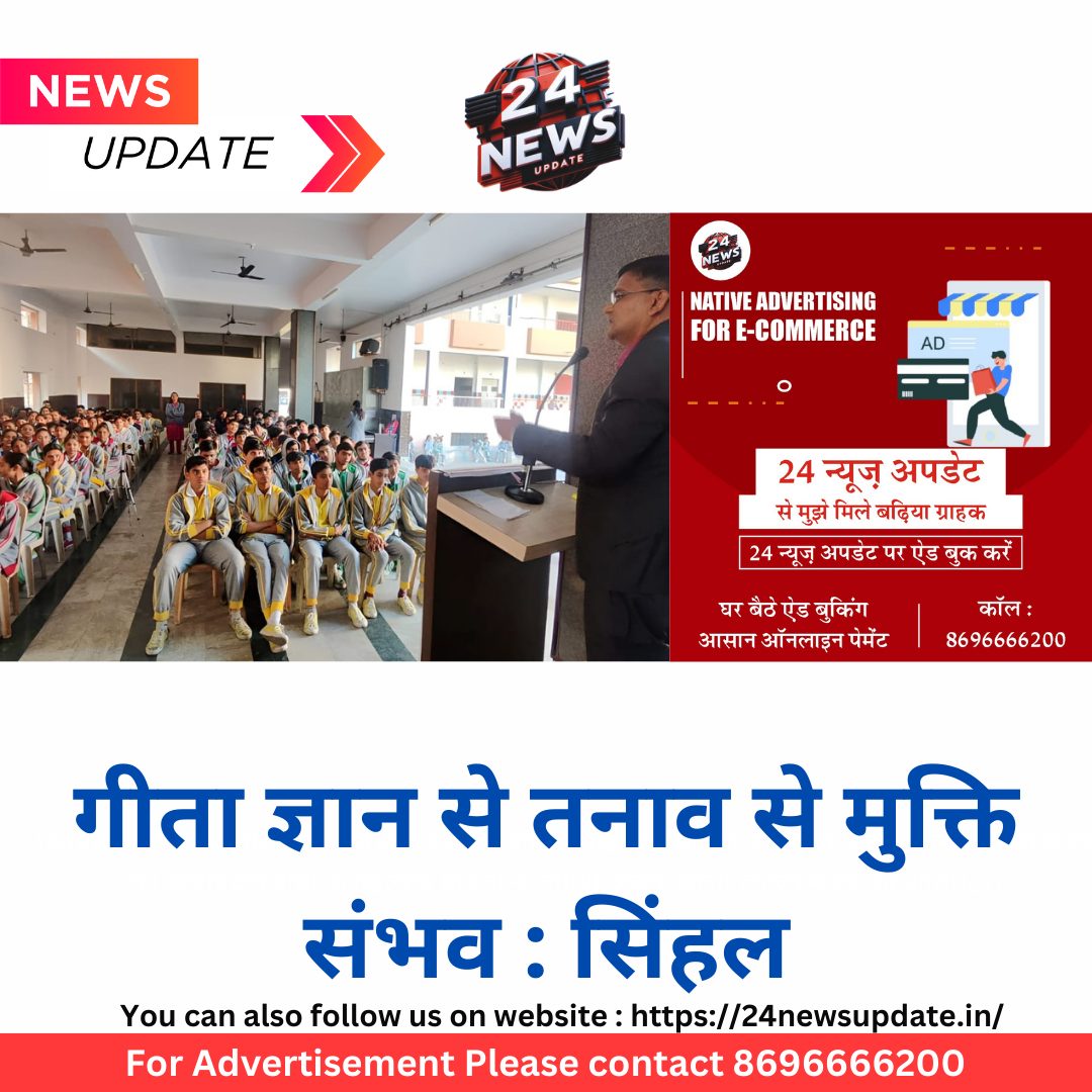 आशीष सिंहल ने गीता के ज्ञान से तनाव प्रबंधन के उपायों पर प्रकाश डाला। उन्होंने बताया कि तनाव पर विजय पाने में श्रीमद्भगवद्गीता ज्ञान से श्रेष्ठ कुछ भी नहीं है। जब व्यक्ति निष्काम भाव से जीवन जीता है और योगस्थ होकर अपने कर्तव्यों का पालन करता है, तब उसे तनाव से मुक्ति मिलती है। उन्होंने गीता के अध्याय 6 (आत्मसंयम योग) का उल्लेख करते हुए बताया कि मन पर नियंत्रण, प्राणायाम और ध्यान के माध्यम से व्यक्ति जीवन की सभी समस्याओं का समाधान कर सकता है और शांति, प्रसन्नता तथा सफलता प्राप्त कर सकता है।