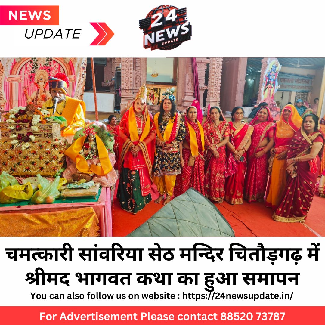 24 न्यूज़ अपडेट शंभूपुरा।ओम जैन शंभूपुरा। चमत्कारी सांवरिया सेठ मन्दिर चितौड़गढ़ के व्यवस्थापक आशीष उपाध्याय ने जानकारी देते हुए बताया कि कथावाचक पंडित श्री सांवरिया शर्मा के मुखारबिंद से चल रही भागवत कथा के सातवे दिवस पर श्री कृष्ण सुदामा की मित्रता का प्रसंग सुनाया एवं सजीव झांकी सजाई गई,सभी भक्तों ने भावविभोर होकर भागवत जी को एवं पंडित जी को विदाई दी।
