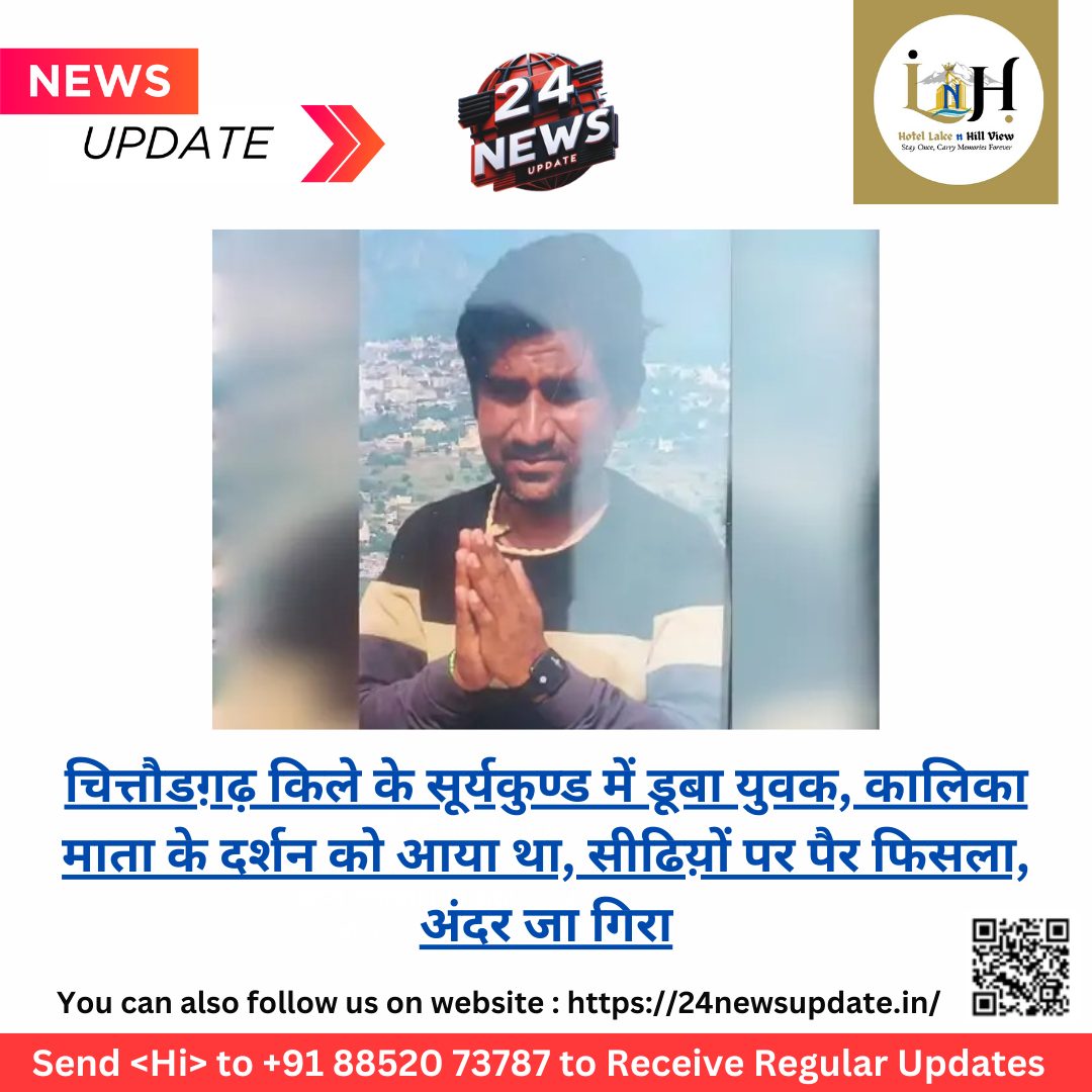 24 न्यूज़ अपडेट चित्तौडग़ढ़। चित्तौडग़ढ़ फोर्ट के सूर्यकुण्ड में एक युवक मंगलवार को डूब गया। युवक मध्य प्रदेश के धार का रहने वाला था व परिवार सहित रामदेवरा से वापस धार लौट रहा था। रास्ते में परिवार दुर्ग पर कालिका माता मंदिर में दर्शन के लिए आ गया। यहां से सूर्यकुण्ड के सीढिय़ों पर गए। यहां पर पैर फिसलने से युवक सीधा कुंड में जा गिरा। कोतवाली पुलिस और सिविल डिफेंस की टीम पहुंची। युवक का शाम तक कुछ पता नहीं चला। पुलिस ने बताया कि मध्यप्रदेश के धार जिले का बहादुर (27) पुत्र दुर्गानाथ कालबेलिया परिवार के साथ रामदेवरा से वापस एमपी अपने घर की तरफ जा रहे थे। परिवार दुर्ग स्थित कालिका माता मंदिर के दर्शन के लिए आया। युवक ने कथित रूप से नशा कर लिया और सूर्यकुंड की सीढिय़ों पर जाकर बैठ गया व फिसल गया। परिजनों ने आसपास के लोगों को जानकारी दी। इसके बाद सूचना कोतवाली थाना पुलिस को दी गई। लोगों की भीड़ जमा हो गई। मौके पर पुलिस पहुंची और इसकी जानकारी सिविल डिफेंस की टीम को दी। टीम लगातार वहां युवक की तलाश करने में जुट गई, लेकिन शाम होने तक भी युवक नहीं मिला।