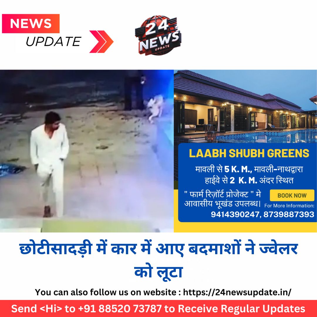 24 न्यूज अपडेट. छोट़ी सादड़ी। प्रतापगढ़ से जयपुर बस में सफर कर रहे एक सर्राफा व्यवसायी को लूटने का मामला सामने आया है। व्यापारी लबाना ट्रैवल्स की बस से जयपुर के लिए यात्रा कर रहा था। बताया गया कि यह बस छोटीसादड़ी के पास कृष्णा होटल पर रुकी तो व्यापारी भी शौच के लिए बस से नीचे उतर गया। इस दौरान पीछा कर रहे बदमाशों ने भी अपनी ब्रेजा कार को रोका और व्यापारी का जेवरों से भरा बैग छीन कर भाग गए। इस बैग में करीब 2 से 3 लाख रुपए के जेवरात बताए जा रहे है। यह पूरी घटना होटल पर लगे सीसीटीवी कैमरे में कैद हो गई है। पुलिस ने व्यापारी की रिपोर्ट पर मामला दर्ज कर लिया है। आरोपियों की पहचान की जा रही है।