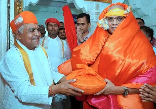 24 न्यूज अपडेट, राजसमंद। जगदगुरु शंकराचार्य स्वामी प्रज्ञानंद सरस्वती ने आज श्रीनाथजी मंदिर में राजभोग की झांकी के दर्शन किए। परंपरानुसार फेंटा बांधकर मंदिर मंडल की ओर से रजाई और उपरना ओढाया और श्रीजी प्रभु का प्रसाद भेंट कर समाधान किया गया। जगदगुरु ने देश में सुख-समृद्धि और शांति की कामना की। अनंत श्री विभूषित द्वारिका, शारदा एवं ज्योतिष पीठाधीश्वर आदि जगदगुरु शंकराचार्य स्वामी प्रज्ञानानंद सरस्वती इससे पहले श्रीनाथ जी मंदिर के मोतीमहल चौक पहुंचे जहां से मंदिर में प्रवेश कर श्रीजी प्रभु की राजभोग झांकी के दर्शन किए। मंदिर परंपरानुसार श्रीनाथजी मंदिर के अधिकारी सुधाकर शास्त्री ने उनका फेंटा बांधकर, रजाई और उपरना ओढाया और श्रीजी प्रभु का प्रसाद भेंट कर समाधान किया। Share this: Share on X (Opens in new window) X Share on Facebook (Opens in new window) Facebook More Email a link to a friend (Opens in new window) Email Share on WhatsApp (Opens in new window) WhatsApp Like this:Like Loading... Related Discover more from 24 News Update Subscribe to get the latest posts sent to your email. Type your email… Subscribe Post navigation मदार एवं ब्राह्मणों की हुन्दर गांव को पुनः स्मार्ट विलेज का तमगा,राज्यपाल ने भेजा प्रषंसा पत्र खुशखबरी : 5 मई से 30 जून तक हर संडे उदयपुर सिटी- कोलकाता साप्ताहिक स्पेशल रेलसेवा, 24 स्टेशनों पर होगा ठहराव