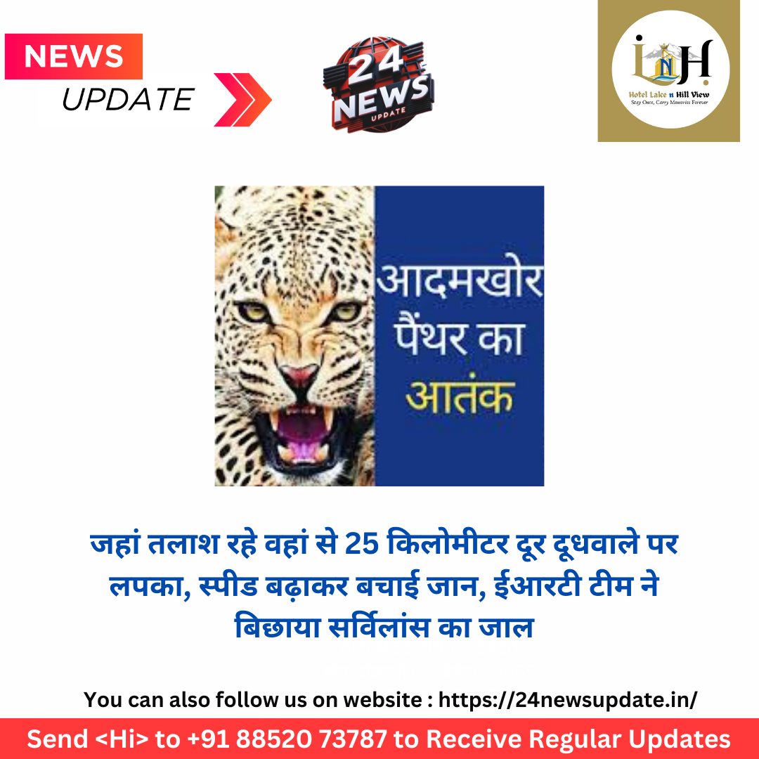 24 न्यूज अपडेट. उदयपुर। उदयपुर में आदमखोर घोषित पेंथर को पकड़ने के अब तक के सभी प्रयास नाकाम रहे हैं। मानव पर हमले की रोज नई घटनाएं सामने आ रही है। ताजा मामला कल का सामने आया है जिसमें बताया जा रहा है कि पेंथर अब उस इलाके से 25 किलोमीटर दूर की रेंज में आ गया है जहां पर उसे तलाशा जा रहा हैं। कल शाम को उसने एक दूधवाले पर हमला किया। दूध वाला पेंथर को देख बाइक को भगा ले गया जिससे जान बच गई। बताया गया कि सर्च टीम लगातार तलाश कर रही है मगर गोगुंंदा रेंज में पेंथर के हमले कम होने का नाम नहीं ले रहे हैं। रोज वह टीम को गच्चा देकर भागने में कामयाब हो रहा है। कल रात को अंधेरे में पेंथर बाइक सवार दूध वाले पर लपका और 250 मीटर के आस-पास उसका पीछा भी किया। गोगुंदा और बड़गांव ब्लॉक के आस पास के जंगलों में इमरजेंसी रेस्पांस टीम के नेतृत्व में वन विभाग की पूरी टीम उसकी तलाश कर रही है। पेंथर यहां से आगे निकल गया है और कल गोगुंदा ब्लॉक की सायरा वन रेंज के ढोल गांव में शिकार की तलाश में दिखाई दिया। इस घटना से वन विभाग की पूरी टीम की दिक्कतें और अधिक बढ़ गई है। सरदारपुरा गांव के रहने वाले कालू सिंह ने मीडिया को बताया कि वह रोज शाम को बाइक पर दूध की सप्लाई करने जाता है। शुक्रवार शाम को साढ़े सात बजे के आस पास वह ढोल गांव में सरकारी स्कूल से करीब एक किलोमीटर आगे निकला और कमोल रोड पर आया। यहां पर उसने देखा कि सड़क के पास दुबक कर बैठे पेंथर ने उस पर अचानक हमला कर दिया। वह भागता हुआ बाइक के पास आ गया। बाइक की लाइट पड़ते ही पेंथर इधर, उधर हुआ। लेकिन तुरंत नजदीक आ गया। पेंथर को देखकर वह डर तो गया मगर तुरंत मोटर साइकिल को फुल स्पीड में चलाते हुए शोर मचाकर वहां से निकल गया। बहुत आगे जाने के बाद जान में जान आई क्योंकि कुछ देर व दूरी तक पेंथर ने बाइक का जोरदार तरीके से पीछा किया। अगर बाइक नहीं भगाता तो अनहोनी हो सकती थी। उसने गांव में पहुंच कर लोगों को यह बात बताई तो लोग सतर्क हो गए व लठ लेकर गश्त आरंभ कर दी। इस रूट पर वह तथा और भी कुछ लोग दूध की सप्लाई करने आते हैं। ऐसे में अब उनके लिए यहां से रोज उसी समय पर गुजरना बहुत बड़ी चुनौती बन गया है। आपको बता दें कि इसी प्रकार पेंथर ने ढोल गांव में बस स्टैंड के पास कल रात को एक बाड़े में बंधी गायों पर हमला कर दिया तथा बछड़े का शिकार करने का प्रयास किया। उसको लहूलुहान कर दिया। उसके जोर से रंभाने पर गांव में जाग हो गई और शोरगुल से पेंथर भाग छूटा।