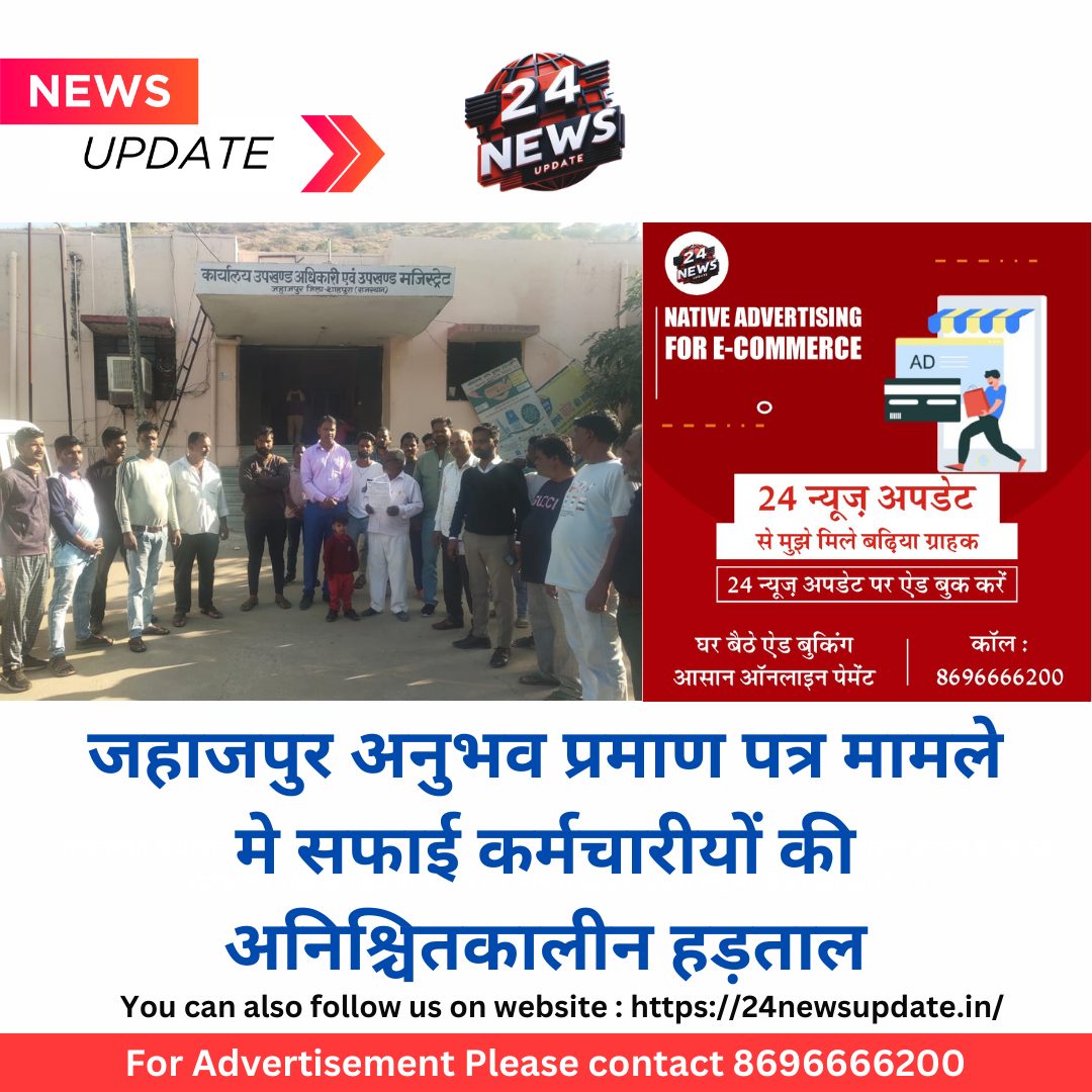 24 न्यूज अपडेट शाहपुरा जिलें के जहाजपुर अखिल राजस्थान सफाई मजदूर कांग्रेस के आह्वान पर 3 दिसंबर को 24 घंटे का अल्टिमेटम दिए जाने के बाद कल से सभी सफाई कर्मचारी सामुहिक अवकाश लेकर सफाई कार्य का बहिष्कार कर 5 दिसंबर से अनिश्चितकालीन हड़ताल पर जाएंगे।सफाई मजदूर कांग्रेस के जीवणराम घारू ने बताया कि राज्य सरकार द्वारा 23820 सफाई कर्मचारियों की भर्ती निकाली गई उसमें अनुभव प्रमाण पत्र वाल्मिकी समाज के नहीं बनाकर उक्त गैर वाल्मिकी समाज के बनाये जा रहे है। जो न्याय संगत नहीं हैं क्योंकि 2018 की सफाई कर्मचारी भर्ती में जितने भी गैर वाल्मिकी समाज के सफाई कर्मी लगेंगे कि आज तक सफाई का कार्य नहीं किया इस बात को राज्य सरकार व राज्य सरकार का प्रशासन जानता हैं फिर भी गैर वाल्मिकी समाज को जानबूझकर अनुभव प्रमाण पत्र में प्राथमिकता दी जा रही हैं। जबकि वाल्मिकी समाज पुराने समय से लेकर आज तक परम्परागत सफाई का कार्य करता हैं। इस भर्ती में अगर वाल्मिकी समाज को शत प्रतिशत अनुभव प्रमाण पत्र दिए जाने से राजस्थान के सफाई प्रदेश अध्यक्ष के आह्वान पर जहाजपुर नगर पालिका के सफाई कर्मचारी 5 दिसंबर से अनिश्चितकालीन हड़ताल पर रहेंगे।