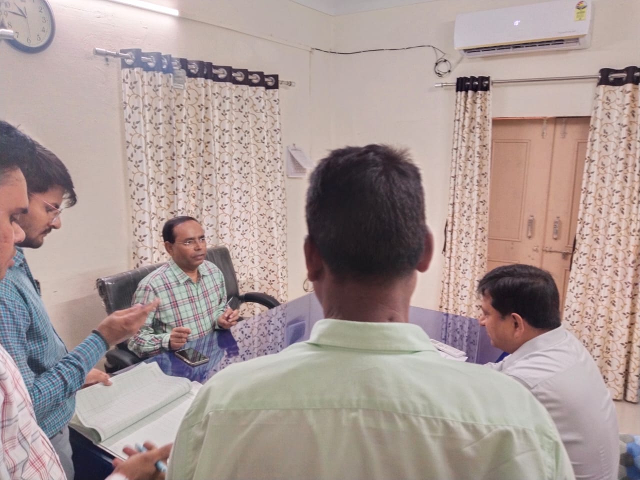 पीएचईडी कार्यालय में गंदगी पाई जाने पर ज़िला कलेक्टर ने जताई नाराज़गी , स्वच्छता सुनिश्चित करने के दिए निर्देश 24 न्यूज अपडेट शाहपुरा . शाहपुरा ज़िले में कार्यालय निर्धारित समय से पहुँचने के अनुशासन को सुनिश्चित करने के उद्देश्य से सोमवार को ज़िला कलेक्टर राजेंद्र सिंह शेखावत ने ज़िले में संचालित हो रहे विभिन्न सरकारी कार्यालयों का औचक निरीक्षण किया |ज़िला कलेक्टर शेखावत द्वारा ज़िले के पीएचईडी कार्यालय तथा ए.वि.एन.एल कार्यालय का आकस्मिक निरीक्षण किया गया निरीक्षण के दौरान ज़िला कलेक्टर शेखावत ने पीएचईडी तथा एविएनएल कार्यालय के प्रत्येक सेक्शन की कार्यप्रणाली का मुआइना किया तथा सभी लंबित प्रकरणों के समयबद्ध रूप से निस्तारण करने के लिए संबंधित अधिकारियो तथा कर्मचारियो को निर्देशित किया |शेखावत ने पीएचईडी कार्यालय के प्रांगण में साफ़सफ़ाई दुरुस्त ना पाए जाने पर नाराज़गी जताते हुए वहाँ मौजूद अधिकारियो तथा कर्मचारियो को कार्यालय में व्यवस्थित रूप से साफ़ सफ़ाई सुनिश्चित करने के निर्देश दिये |ज़िला कलेक्टर शेखावत ने बताया की कार्य संचालन में समयबद्धता के अनुशासन को सुनिश्चित करने के लिए प्रशासन द्वारा इस प्रकार के आकस्मिक निरीक्षण भविष्य में भी किए जाएँगे तथा लगातार अधिकारियो एवं कर्मचारियों द्वारा कार्यालय समय पर कार्यालय में अनुपस्थित पाये जाने तथा कार्यालयों में व्यवस्थित साफ़ सफ़ाई सुनिश्चित ना करने पर सख़्त कार्रेवाई की जाएगी Share this: Share on X (Opens in new window) X Share on Facebook (Opens in new window) Facebook More Email a link to a friend (Opens in new window) Email Share on WhatsApp (Opens in new window) WhatsApp Like this:Like Loading... Related Discover more from 24 News Update Subscribe to get the latest posts sent to your email. Type your email… Subscribe Post navigation गंगु कुंड परिसर में 26 लाख रूपये के निर्माण कार्य का हुआ शुभारंभ निपाह वायरस को लेकर राजस्थान के सभी मेडिकल कॉलेज को भेजा अलर्ट, केरल से आने वाले यात्रियों के लिए भी टूरिस्ट अलर्ट