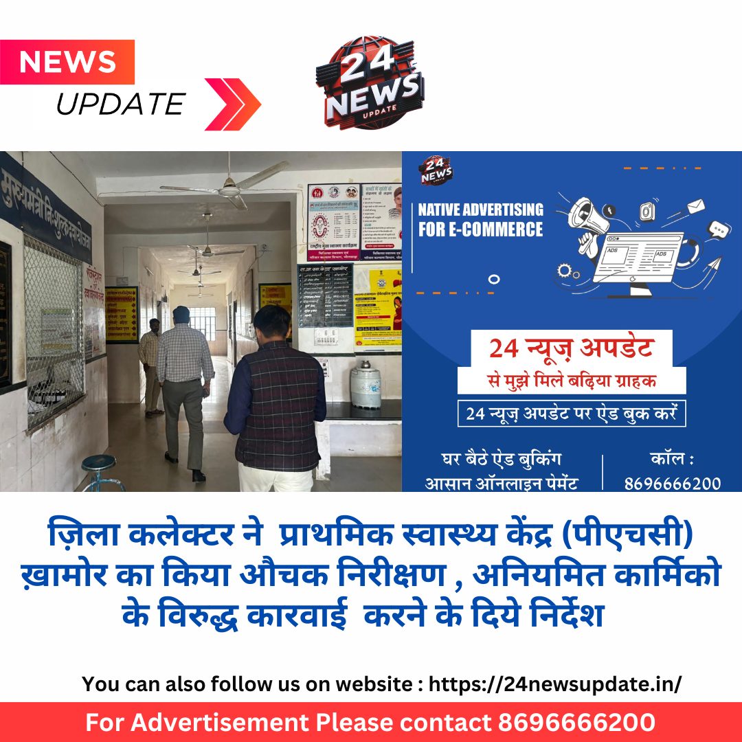 24 न्यूज अपडेट शाहपुरा , 29 नवंबर | जिला कलेक्टर राजेंद्र सिंह शेखावत ने शुक्रवार को ख़ामोर स्थित प्राथमिक स्वास्थ्य केंद्र का औचक निरीक्षण किया | निरीक्षण के दौरान ज़िला कलेक्टर ने अस्पताल की व्यवस्थाओं का जायजा लिया, मरीजों को मिल रहे इलाज के बारे में जानकारी ली तथा चिकित्साधिकारी को मौसमी बीमारियों के लिए व्यवस्थाओं को और अधिक मुस्तैद रखने के लिए कहा।