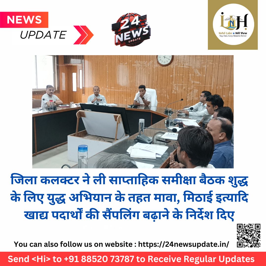 बैठक में जिला कलक्टर ने त्योहारों के सीजन को देखते हुए शुद्ध के लिए युद्ध अभियान के तहत मावा, मिठाई इत्यादि खाद्य पदार्थों की सैंपलिंग बढ़ाने एवं दोषियों पर कार्रवाई करने के निर्देश दिए। उन्होंने भू – जल के अवैध दोहन पर कार्यवाही करने, वर्षा जल का उचित प्रबंधन करने, शहर में आवारा पशुओं की समस्या का निराकरण करने के निर्देश दिए। उन्होंने पीडब्ल्यूडी के अधिकारियों को वन क्षेत्र में सड़क निर्माण कार्यों की एनओसी के प्रकरणों की नियमित समीक्षा करने एवं वन विभाग के साथ समन्वय स्थापित कर कार्यवाही करने के निर्देश दिए।