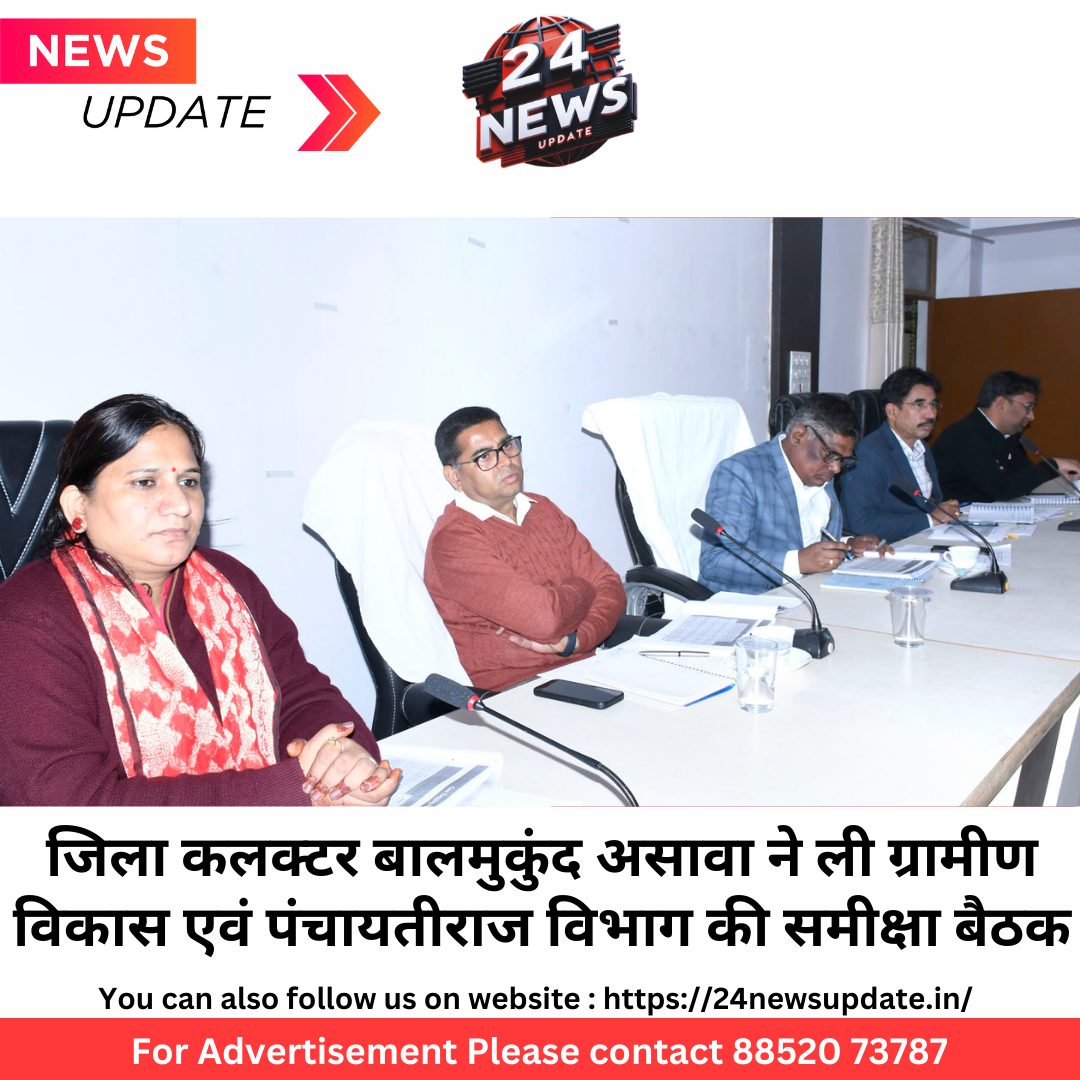 24 न्यूज़ अपडेट राजसमंद, 5 फरवरी। जिला कलक्टर बालमुकुंद असावा ने बुधवार को जिला परिषद में ग्रामीण विकास एवं पंचायतीराज विभाग की मैराथन बैठक ली जिसमें नगर निकायों, पीडब्ल्यूडी, विद्युत विभाग, जलदाय विभाग के अधिकारियों को भी बुलाया गया। इस दौरान सीईओ बृजमोहन बैरवा, एसीईओ सुमन अजमेरा, टीओ विकास अग्रवाल आदि उपस्थित रहे।
