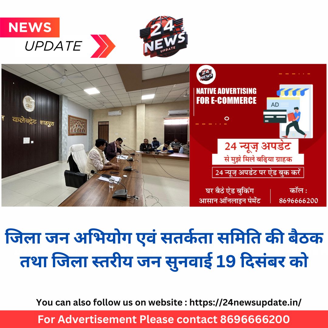 24 न्यूज़ अपडेट शाहपुरा ,शाहपुरा जिला जन अभियोग एवं सतर्कता समिति की नियमित मासिक बैठक तथा संपर्क समाधान शिविर के अन्तर्गत जिला स्तरीय जनसुनवाई दिनांक 19 दिसंबर
