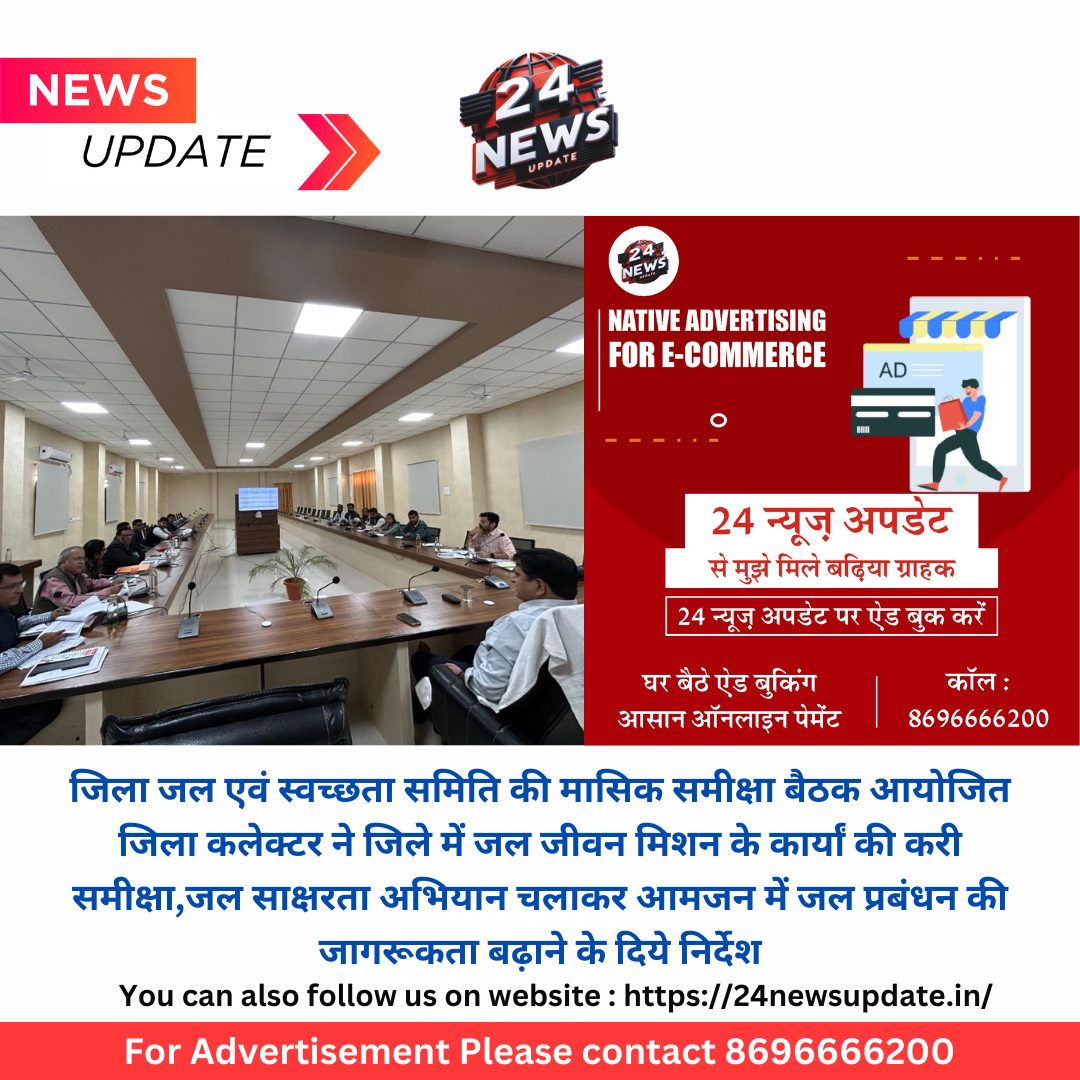 24 न्यूज अपडेट शाहपुरा , 28 नवंबर |ग्रामीण क्षेत्र के प्रत्येक घर में नल से शुद्ध पेयजल पंहुचाने की योजना जल जीवन मिशन के तहत जिले में सफल क्रियान्वयन के लिये जिला जल एवं स्वच्छता समिति की मासिक समीक्षा बैठक गुरुवार को जिला कलेक्टर राजेंद्र सिंह शेखावत की अध्यक्षता में कलक्ट्रेट सभागार में आयोजित हुई।बैठक मे जन स्वा.अभि.विभाग के अधीक्षण अभियंता श्रवण सिंह खिड़िया एवं चम्बल प्रोजेक्ट के अधीक्षण अभियन्ता वी. के. गर्ग ने जल जीवन मिशन की प्रगति के बारें में अवगत करवाया। चम्बल परियोजना अन्तर्गत जिले के विभिन्न ग्रामो में नल कनेक्शन उपलब्ध करवाने हेतु स्वीकृत कार्यो के तहत अब तक 60 नई टंकियो, 7 स्वच्छ जलाशय, 2 नए पंप हाउस निर्माण किये तथा 2997 कि.मी. पाइप लाइन बिछाई जा कर जिले की ग्रामीण क्षेत्र के कुल 156165 परिवारी में से अब तक 148900 परिवारों को नल कनेक्शन उपलब्ध कराये जा चुके है । इस वर्ष के लक्ष्य 16890 नल कनेक्शन के विरुद्ध अब तक 16506 नल कनेक्शन किए जा चुके है। जिला कलक्टर ने जेजेएम के कार्य में प्रगति लाने एवं सभी ब्लॉक के सभी घरों में टैप कनेक्शन उपलब्ध करवाए जाने के निर्देश दिए जिला कलेक्टर ने नल कनेक्शन से शेष रही स्कूल, आंगनबाड़ी, ग्राम पंचायत भवन तथा हैल्थ सेंटर की सूची का मिलान कर एवं शेष को जल कनेक्शन उपलब्ध करवाने के लिए निर्देशित किया।