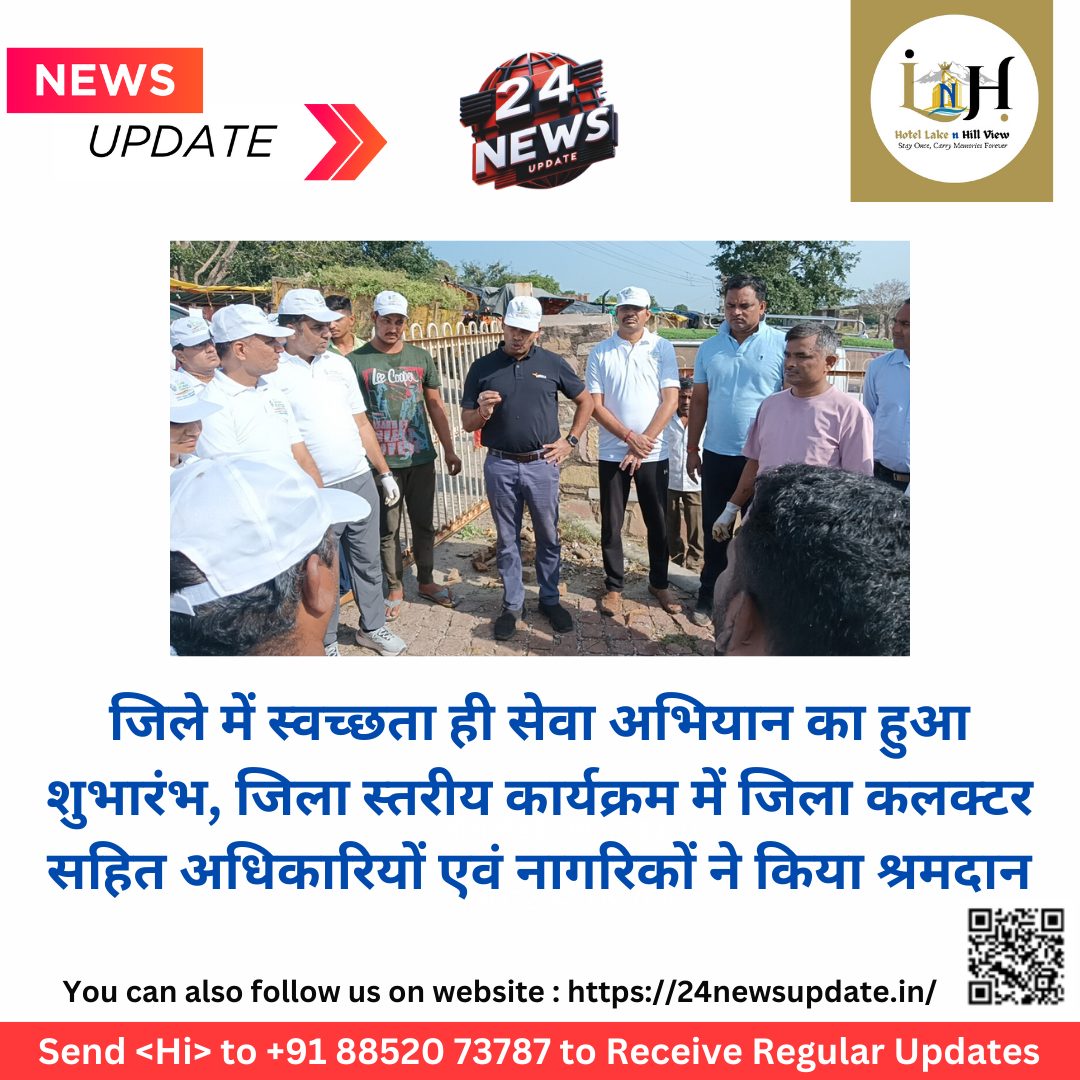 24 न्यूज़ अपडेट निम्बाहेडा। जिले में स्वच्छता ही सेवा अभियान का शुभारंभ मंगलवार को हुआ। जिला स्तरीय कार्यक्रम किला स्थित कालिका माता मंदिर परिसर में आयोजित किया गया। इस अवसर पर जिला कलक्टर आलोक रंजन सहित जिला प्रशासन के अधिकारियों, कार्मिकों, जनप्रतिनिधियों, गणमान्य नागरिकों ने स्वच्छता हेतु श्रमदान किया। इस अवसर पर जिला कलक्टर ने स्वच्छता अभियान को जन आंदोलन बनाने और सभी से अपने आसपास सफाई रखने, पॉलिथीन का उपयोग न करने, कचरे को कचरापात्र में डालने का आह्वान किया। उन्होंने कहा कि हम सभी मिलकर स्वच्छ और सुंदर चित्तौड़ बनाएंगे। जिला कलक्टर ने स्वच्छता की शपथ दिलाई एवं एक पेड़ मां के नाम अभियान के तहत पौधारोपण भी किया। उन्होंने मंदिर के आसपास के दुकानदारों को प्लास्टिक की थैलियों का इस्तेमाल नहीं करने के निर्देश दिए।