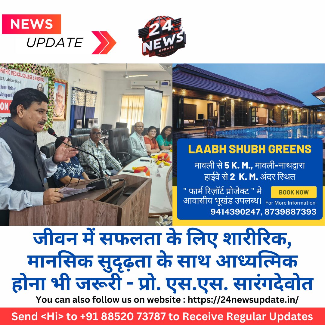 24 न्यूज अपडेट. उदयपुर। जनार्दन राय नागर राजस्थान विद्यापीठ के संघटक होम्योपैथी चिकित्सा महाविद्यालय की ओर से नवागंतुक विद्यार्थियों के लिए आयोजित 10 दिवसीय इंडक्शन प्रोग्राम का आगाज शुक्रवार को महाविद्यालय के सभागार में कुलपति प्रो. एस.एस. सारंगदेवोत, प्राचार्य डॉ. अमिया गोस्वामी, डीन प्रो. गजेन्द्र माथुर, डॉ. बबीता रशीद, डॉ. लिली जैन, डॉ. निवेदिता ने माँ सरस्वती की प्रतिमा पर दीप प्रज्वलित कर किया। प्रारंभ में प्राचार्य डॉ. अमिया गोस्वामी ने अतिथियों का स्वागत करते हुए होम्योपैथी की विकास यात्रा को प्रदर्शित किया। अध्यक्षता करते हुए प्रो. एस.एस. सारंगदेवोत ने कहा कि विद्यापीठ हेरिटेज संस्थान है जिसकी स्थापना आजादी के 10 वर्ष पूर्व 1937 में मनीषी पंडित जनार्दनराय नागर ने वंचित वर्ग के उत्थान एवं शिक्षा की मुख्यधारा से जोड़ने के उद्देश्य से की थी। प्रो. सारंगदेवोत ने भावी डॉक्टरों का आव्हान किया जीवन में सफलता के लिए शारीरिक, मानसिक रूप से सुदृढ़ होने के साथ आध्यत्मिक ज्ञान भी जरूरी है। विद्यार्थी आने वाले 25 वर्षो का रोडमेप तैयार करें कि उन्हें आगे करना क्या है? होम्योपैथी एक ऐसी चिकित्सा विधा है जिसमें किसी भी बीमारी का बिना किसी साइड इफेक्ट के इलाज संभव है। इस पेशे में मानवीय संवेदनशील होना भी जरूरी है। जब व्यक्ति परेशान होता है तभी वह डॉक्टर के पास जाता है इसलिए पहले मरीज की पूरी बात सुनना ज़रूरी है। इस अवसर पर प्रो. आईजे माथुर, डॉ. नवीन विश्नोई, डॉ. अजीता रानी, डॉ. एजाज़, डॉ. मिनाक्षी श्रीवास, डॉ. संतोष लांबा, डॉ. सुमित धाकड़, डॉ. धीरेन्द्र सिंह सहित विद्यार्थी तथा उनके अभिभावक उपस्थित थे। संचालन डॉ. ऐश्वर्या पंवार, डॉ. साक्षी सनाढ्य ने किया जबकि आभार डॉ. लिली जैन ने जताया। Share this: Share on X (Opens in new window) X Share on Facebook (Opens in new window) Facebook More Email a link to a friend (Opens in new window) Email Share on WhatsApp (Opens in new window) WhatsApp Like this:Like Loading... Related Discover more from 24 News Update Subscribe to get the latest posts sent to your email. Type your email… Subscribe Post navigation कथक की बारीकियों ने किया समोहित, युगम बैंड से छेड़े दिल के तार, लर्निंग शेयरिंग से मिली सीख, थर्ड स्पेस में धरोहर संस्था का आर्टमोस्फ़ेयर का आगाज, 12 कार्यशालाओं का आयोजन उपमुख्यमंत्री दिया कुमारी 9 को सलूंबर दौरे पर