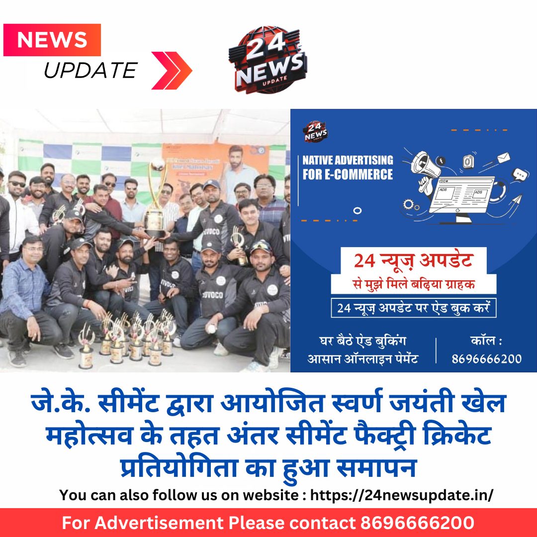 24 न्यूज अपडेट निम्बाहेड़ा। जे.के. सीमेंट के गौरवशाली 50 वर्ष पूर्ण होने के उपलक्ष्य में आयोजित अंतर सीमेंट फैक्ट्री क्रिकेट प्रतियोगिता का समापन अंडर 19 के खिलाड़ी रहे अशोक मेनारिया एवं राजस्थान क्रिकेट एसोसिएशन के उपाध्यक्ष शक्ति सिंह शक्तावत के मुख्य आतिथ्य में हुआ। इस अवसर पर आयोजित कार्यक्रम की अध्यक्षता भी सीएसआर हेड प्रभाकर मिश्रा ने की। विशेष अतिथि के रूप में टेक्निकल हेड राजेश सोनी मौजूद रहे।