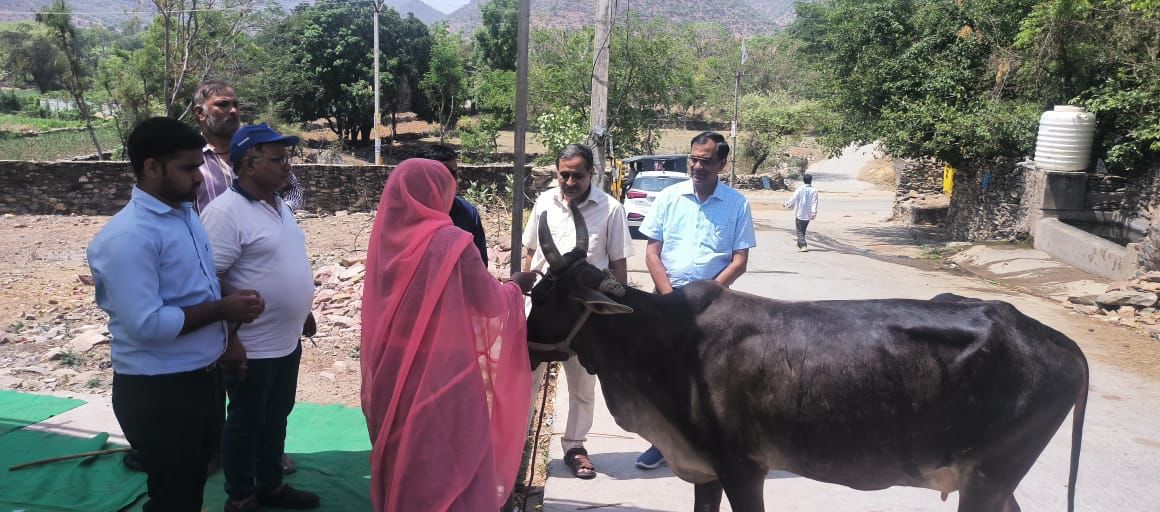 24 न्यूज अपडेट उदयपुर, 24 मई, 2024। महाराणा प्रताप कृषि एवं प्रौद्योगिकी विश्वविद्यालय, उदयपुर एवं पशुपालन विभाग, उदयपुर के संयुक्त तत्वाधान में स्मार्ट गांव ब्राह्मणों की हुन्दर में एक दिवसीय पशुधन स्वास्थ्य शिविर का आयोजन किया गया। कार्यक्रम के आरम्भ में निदेशक प्रसार शिक्षा, डॉ. आर.ए. कौशिक ने सभी अतिथियों का स्वागत करते हुये कहा कि स्मार्ट गांव मदार एवं ब्राम्हणों की हुन्दर में विश्वविद्यालय द्वारा विकसित नवीन कृषि प्रौद्योगिकी एवं नवाचार को अपनाने की अपील की। इस शिविर का मुख्य उद्देश्य पशुपालकों को पशु स्वास्थ्य के प्रति जागरूक करना है।