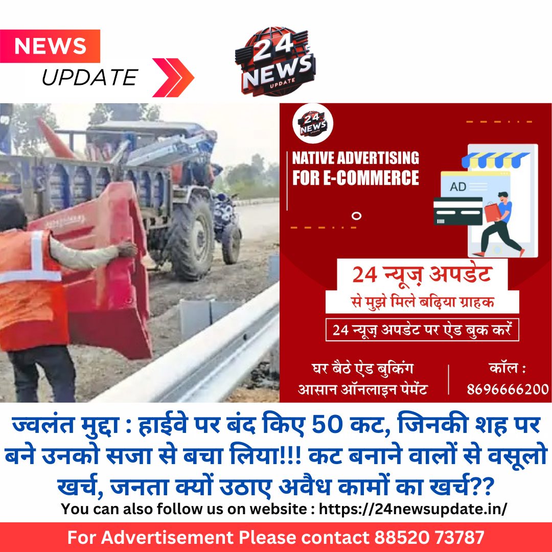 24 न्यूज अपडेट. उदयपुर। यह बहुत ही गंभीर मामला है। जयपुर में भीषण हादसे के दिन से सवाल उठ रहे थे कि हाईवे अवैध रूप से खतरनाक कट आखिर किसकी शह पर बनाए गए हैं इन कटों से कई बार कई हादसे हो चुके थे लेकिन इनकी संख्या दिनों दिन अफसरों, हाईवे अथॉरिटी के भ्रष्ट कारिंदां और होटल व ढाबा मालिकों की मिलीभगत से बढते ही जा रहे थे। जिस दिन जयपुर के हादसे की खबर आई उसी दिन उदयपुर में जिला प्रशासन की ओर से बैठक करके कहा गया था कि अब कट बनाने वालों पर सख्त कार्रवाई की जाएगी, उन्हें चिन्हित किया जाएगा लेकिन कुछ ही दिन बाद फिर से खबर आई कि 50 कट को बंद कर दिया गया हैं अब बडा सवाल ये उठ रहा है कि ये कट जनता की सहूलियत के लिए उसकी सुरक्षा के लिए बंद किए गए हैं या फिर भ्रष्ट अफसरों व हाईवे के अधिकारियों आदि को कानूनी डंडे से बचाने के लिए किया गया है। माननीय हाईकोर्ट खुद जयपुर के मामले की सुनवाई कर रहा है व हर बात की मॉनिटरिंग करते हुए पूछ रहा है कि कट वैध हैं या अवैध। कहीं कोर्ट के डंडे से बचने के लिए तो अवैध कटों को तुरंत बंद नहीं कर दिया गया। जिनकी शह पर ये कट बनाए गए उनको क्या सजा मिली यह अब जनता पूछ रही है। अगर पनिशमेंट नहीं दिया तो यह नजरी बन जाएगी। पहले मिलीभगत करके भ्रष्टाचार कर लो व बाद में प्रशासनिक मिलीभगत से उसको बंद करते हुए उसका श्रेय भी ले लो कि हमने जनहित में यह काम किया है।