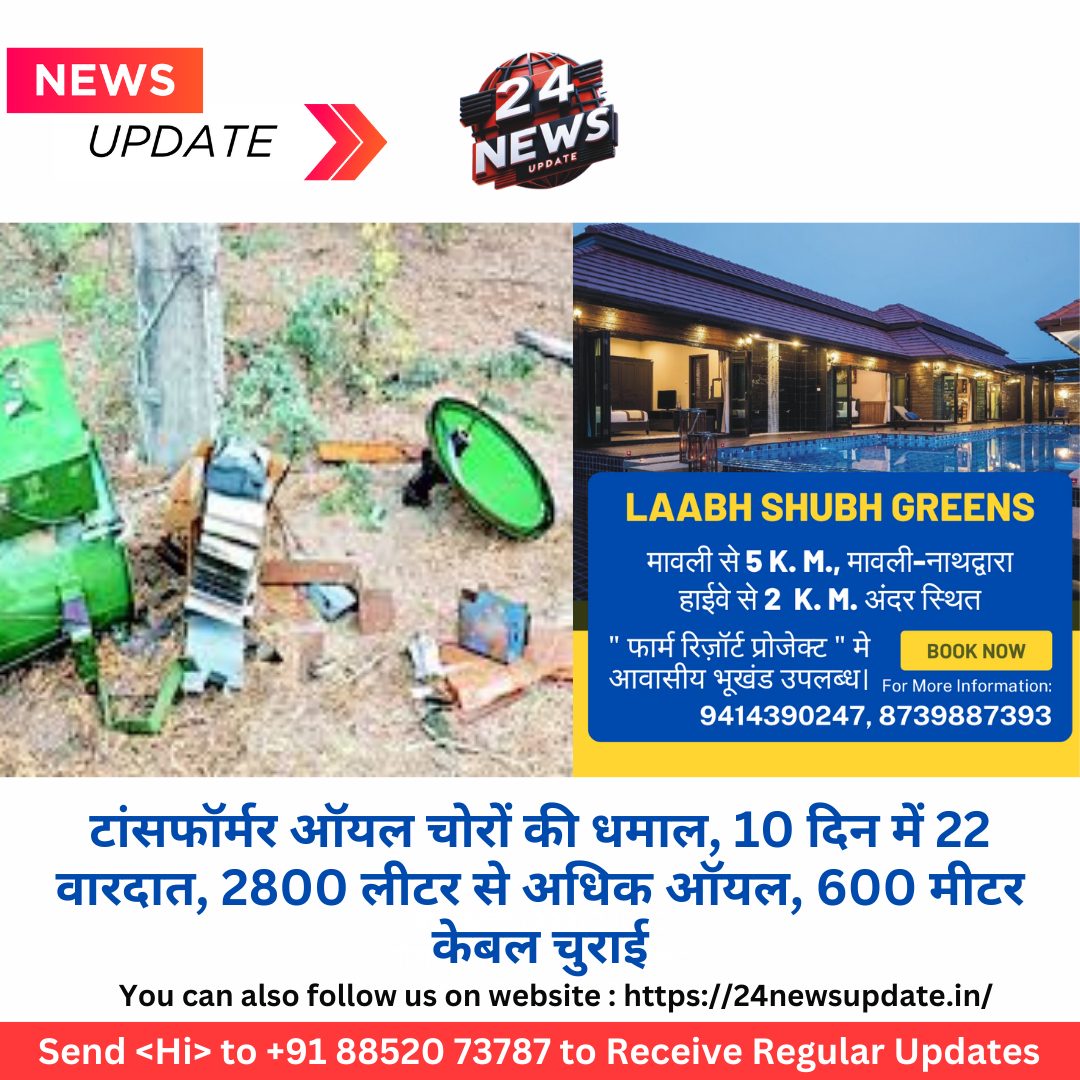 24 न्यूज अपडेट. चित्तौड़गढ़। निमबाहेड़ा के गांवों में अलग-अलग जगहों पर विद्युत टांसफॉर्मर्स से 10 दिन में करीब 2800 लीटर ऑयल व 600 मीटर केबल चोरी हो गया। डीजल और तार चोरी होने से कई गांव कई दिनों तक अंधेरे में डूबे रहे। आमजन को भी काफी परेशानियों का सामना करना पड़ा। जेईएन राहुल जैन की ओर से अब सदर पुलिस थाना में रिपोर्ट दी गई है। इसमें बताया गया है कि पंचायत समिति के विभिन्न गांवों में 20 अक्टूबर से 31 अक्टूबर तक के बीच विद्युत आपूर्ति सुचारू करने लगाए गए ट्रांसफार्मर में से रात को अज्ञात चोरों ने ट्रांसफार्मर से ऑयल चुरा लिया। अज्ञात बदमाश चार पहिया वाहन का उपयोग हैं वे ट्रांसफार्मर में छेद कर ऑयल चुराते हैं। विभिन्न गांवों में अब तक 22 वारदातें पिछले 10 दिनों में हो चुकी हैं। टांसफॉर्मर में से ऑयल निकालने से पूरे गांव की बिजली की आपूर्ति ही ठप हो जाती है। विभिन्न गांवों से शिकायत आने के बाद जब जांच की तो पता चला कि रानीखेडा गांव में कुल 110 लीटर, नरसिंहगढ गांव में 110 लीटर, ढोरिया में 135 लीटर, संगरिया में दो जगहों पर 270 लीटर, भटृ कोटडी में 2 स्थानो से 270 लीटर बडोली माधोसिंह करीब 12 स्थलों पर 1500 लीटर आयॅल व रणछोड पूरा से 135 लीटर, नरसाखेडी में दो स्थानों से 600 मीटर केबल चोरी अज्ञात बदमाशों ने चोरी कर लिया। पंचायत समिति में बिजली बंद होने से भारी परेशानियां आ रही है। सदर पुलिस थाना एएसआई संतोष तिवारी ने बताया कि ट्रांसफार्मरों से ऑयल चोरी की घटनाओं की रिपोर्ट दर्ज कर जांच प्रारम्भ कर दी गई है। अब ग्रामीणों के साथ मिलकर पुलिस बदमाशों को खोज रही है।