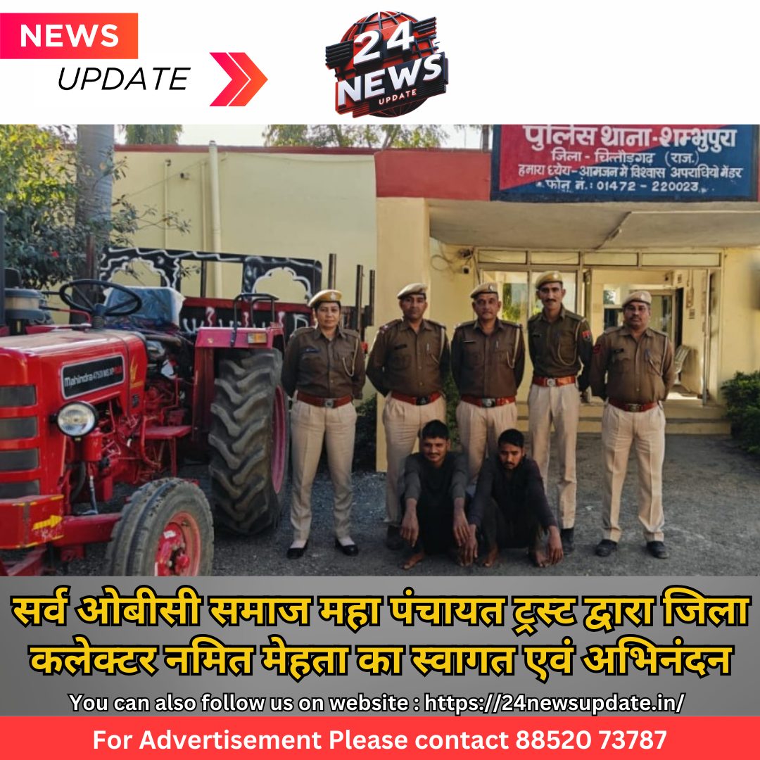 24 न्यूज़ अपडेट चित्तौड़गढ़. ट्रैक्टर की ट्रॉली चोरी होने के 24 घंटे के भीतर ही शंभूपुरा थाना पुलिस ने त्वरीत कार्यवाही करते हुए दो आरोपियों को गिरफ्तार कर चोरी गई ट्रॉली को बरामद किया है। वहीं ट्रॉली को चोरी में प्रयुक्त वाहन ट्रैक्टर को जब्त किया है।पुलिस अधीक्षक सुधीर जोशी ने बताया कि शनिवार को शंभूपुरा कस्बे से चुन्नीलाल डांगी के घर के बाहर खड़ी ट्रेक्टर की ट्रॉली को अज्ञात बदमाश द्वारा चुरा ले जाने के मामले में अपराधियों को गिरफ्तार करने व ट्रॉली को बरामद करने के लिए एएसपी सरिता सिंह के निर्देशन व डीएसपी भदेसर अनिल शर्मा के सुपरविजन में थानाधिकारी शंभूपुरा रामलाल उनि. द्वारा गठित टीम एएसआई डालचंद, सकेन्द्र सिंह हैड कानि. मेघराज, धर्मेंद्र सिंह, कानि. प्रकाश व मुकेश ने अज्ञात बदमाशों की सी.डीआर. व रूट चार्ट प्राप्त कर आसुचना संकलित कर मनोवैज्ञानिक तरिके व सुचना पर त्वरित अनुसंधान कर चौरी की घटना को अंजाम देने वाले आरोपियों गंगरार थाने के जीवा नायको का खेडा निवासी 43 वर्षीय प्रकाशलाल पुत्र रामसिंह बंजारा व 25 वर्षीय राहुल पुत्र बाबुलाल बंजारा को गिरफ्तार कर चोरी की ट्राली को बरामद कर घटना में प्रयुक्त ट्रेक्टर को जब्त किया जाकर अग्रिम अनुसंधान किया जा रहा है। उक्त कार्यवाही में हैड कानि. मेघराज का विशेष योगदान रहा। Share this: Share on X (Opens in new window) X Share on Facebook (Opens in new window) Facebook More Email a link to a friend (Opens in new window) Email Share on WhatsApp (Opens in new window) WhatsApp Like this:Like Loading... Related Discover more from 24 News Update Subscribe to get the latest posts sent to your email. Type your email… Subscribe Post navigation जिला स्तरीय सूर्य नमस्कार कार्यक्रम 300 से अधिक विद्यार्थियों ने किया सूर्य नमस्कार भेरूजी के देवरे में चोरी की वारदात का खुलासा : 500 ग्राम चादी के दो छतर एव घटना में प्रयुक्त मोटरसाईकिल बरामद ,दो आरोपी गिरफ्तार