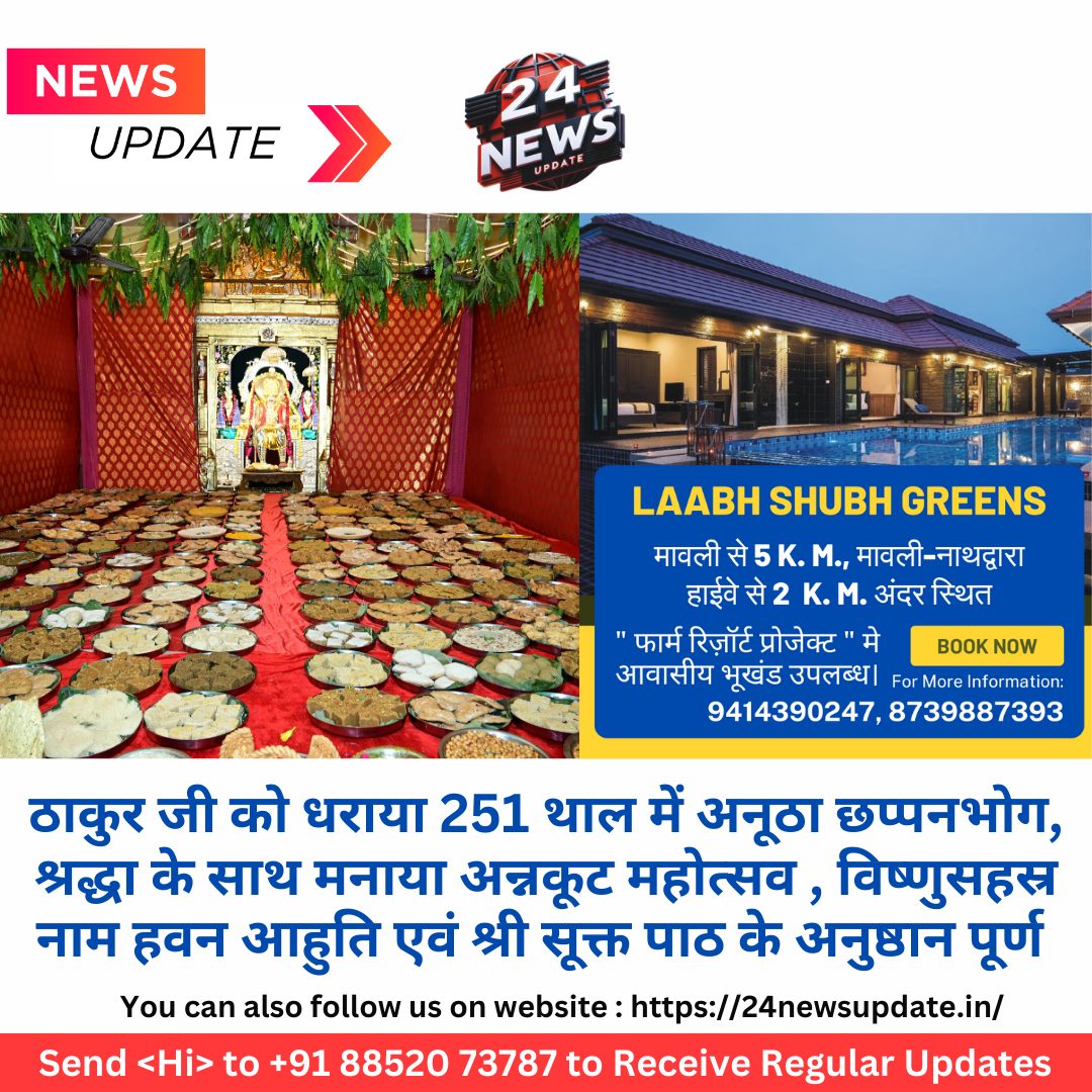 24 न्यूज़ अपडेट निंबाहेड़ा । श्री शेषावतार कल्लाजी वेदपीठ पर देव प्रबोधनी एकादशी पर मंगलवार को कल्याणनगरी के राजाधिराज स्वरूप में ठाकुर जी कल्लाजी सहित पंचदेवों का मनभावन श्रृंगार किया गया। इस दौरान ठाकुर जी राजाधिराज स्वरूप में श्रृंगार भक्तो के लिए विशेष आकर्षण का केंद्र रहा। हर कोई अपने आराध्य के अनुमप स्वरूप को देखकर अपलक निहारते हुए स्वयं को धन्य कर रहा था। प्रातः राजभोग आरती के साथ ही दर्शनार्थियों की भीड़ उमड़ने लगी। साथ ही 56 भोग एवं महा अन्नकूट महोत्सव मनाया गया। स्कंध माता, गायत्री माता, पंचमुखी हनुमानजी एवं काल भैरव की प्रतिमाओं का विशेष श्रृंगार किया। सुबह श्रृंगार आरती से रात्रि शयन आरती तक भक्तों का रैला दर्शन के लिए पहुंचता रहा। ठाकुरजी कल्लाजी को 251 थाल में भगवान जगन्नाथ एवं द्वारिकाधीश को न्यौछावर किए जाने वाला महा छप्पन भोग धराया गया। जिसकी छवि देखती ही बनती थी। कई श्रद्धालु ये कहते हुए सुने गए कि ठाकुर जी के ठाठ तो कल्याणनगरी में देखने को मिलते हैं। जहां समय-समय पर ठाकुर जी के अनुपम श्रृंगार के साथ-साथ नानाविध छप्पन भोग की झांकी देखने योग्य होती हैं। ठाकुर जी को न्यौछावर किया गया छप्पन भोग विशिष्ट हलवाइयों द्वारा पिछले तीन दिनों से तैयार किया गया था। जिसकी भिनी-भिनी महक से वेदपीठ परिसर महक रहा था। अनेक प्रकार के मिष्ठान, चटपटे व्यंजन, आधुनिक खाद्य सामग्री, सूखे मेवे, मौसमी फल अर्पित किए। कल्याण नगरी के राजाधिराज के रूप में ठाकुरजी समय-समय धराए जाने वाले विभिन्न स्वरूपों की झांकी भक्तों के लिए आकर्षण बनती जा रही हैं। साथ ही कार्तिक शुक्ल प्रतिपदा से विष्णुसहस्रनाम की आहुति के हवन की पूर्णाहुति एवं श्री सूक्त पाठ अनुष्ठान पूर्ण हुआ। पाठ एवं हवन अनुष्ठान देव प्रबोधनी एकादशी तक प्रतिदिन श्री कल्लाजी मंदिर के बटुकों एवं आचार्या द्वारा किया गया।