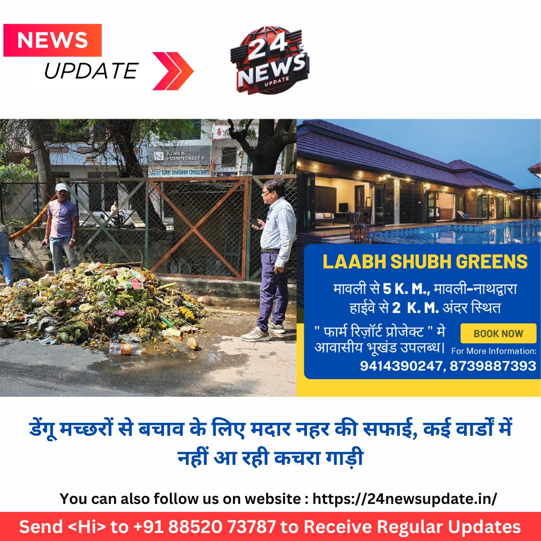 24 न्यूज़ अपडेट उदयपुर। नगर निगम की ओर से मदार नहर की सफाई का कार्य शुरू किया गया है जो जल्द ही संपूर्ण किया जाएगा लेकिन दूसरी तरफ शहर के कई इलाकों में रोज कचरा संग्रहण वाहन नहीं आ रहा है। लोग शिकायतें कर-कर के थक गए हैं मगर हर बार ठेकेदारों के पास नया बहाना होता है। कभी मेन पावर की कमी तो कभी वाहनों का खराब हो जाना, तो कभी अचानक बड़ी संख्या में लोगों का अवकाश पर चले जाना। इसी प्रकार शहर में कई जगह खुले में कचरे के ढेर लगे हुए हैं जहां से सड़ांध उठ रही है। वहां से कचरा कई-कई दिनों तक नहीं उठाया जा रहा है।