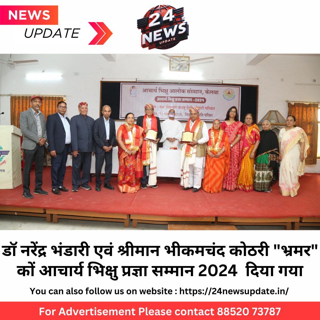 24 न्यूज़ अपडेट उदयपुर . शहर के विज्ञान समिति भवन में आचार्य भिक्षु आलोक संस्थान द्वारा आयोजित आचार्य भिक्षु प्रज्ञा सम्मान 2024 का शुभारम्भ मुनि सम्बोध कुमार मेधांश के नमस्कार महामंत्रोचरण से हुआ | कार्यक्रम को सम्भोदित करते हुए मुनि श्री ने कहा कि समय बीतने पर अतीत विसमृत होने लगता हैँ | आज का युवा गूगल और ऐआई कि आगोश मे काफ़ी प्रैक्टिकल होता जा रहा हैँ किन्तु कृतज्ञ लोग आज भी आचार्य भिक्षु के आदर्श व व्यक्तित्व को अंगीकार कर रहे है | उन्होंने आज सम्मान ग्रहण करने वालों को यह दायित्व सौपा कि वे आचर्य भिक्षु कि प्रज्ञा को प्रसारित करने मे अपनी भूमिका निभावे, यही इस कार्यक्रम कि सार्थकता है |अध्यक्षीय उद्बोधन देते हुए केनेड़ा मै सर्वोच्च नागरिक सम्मान “आर्डर आफ केनेड़ा ” प्राप्त प्रोफेसर जग मोहन हूमर ने कहा उदयपुर मै उनका महिला शक्तिकरण पर विशेष जोर रहा है | अपने वहां विश्वविद्यालय मै प्रयास कर महात्मा गाँधी की आदम कद प्रतिमा स्थापित करा उस पर नियमित माल्यार्पण हो रहा है | इस माध्यम से अहिंसा का सन्देश प्रसारित करने मै सफल रहे है व जिसका असर अब उत्तरी अमेरिका मै नज़र आता है | सामूहिक प्रयासों से इस वर्ष वहां थैंक्स गिविंग डे पर एक लाख व्यक्तियों को शुद्ध सात्विक (मांसाहार- रहित) भोजन परोसा गया जिसके परिणाम स्वरुप कई टर्की पक्षी का वध बच सका |सम्मान प्राप्त करते हुए डॉ नरेन्द्र भंडारी ने कहा कि संस्थान ने मेरे कार्यों का आकलन कर मुझे जो प्रज्ञा सम्मान दिया है इस हेतु मै स्वयं को कृतार्थ महसूस करता हूँ | उन्होंने ज्ञान कि वर्तमान शताब्दी मै सभी को अपना अपना योगदान देते रहने का आह्वान किया |वहीं भीखम चंद कोठारी ने कहा क़ि यह मेरा नहीं धर्म संघ के प्रति समर्पण का सम्मान है | मै शौभाग्यशाली हूं क़ि तुलसी महाशिला अभिलेख के मुख्य किरदार कों निभा पाया|मीडिया प्रभारी प्रोफेसर विमल शर्मा ने बताया क़ि गरिमामय सम्मान समारोह मै डॉ सुरेंद्र पोखरना व लक्ष्मण सिंह कर्णावट ने सम्मान प्राप्तकर्ताओं का परिचय दिया व मंचासीन व्यक्तियों ने उन्हें तिलक, शॉल, उपराणा, श्रीफल, स्मृति चिन्ह, साहित्य व सम्मान राशि प्रदान कर अभिमंत्रित किया |स्वागत, संस्था परिचय एव प्रतिवेदन दिनेश कोठारी व कुल प्रकुख डॉ के एल कोठारी द्वारा प्रस्तुत किया गया | आभार प्रकाश तातेड़ व मंच संचालन श्रीमती मोनिका कोठारी ने कियाइनका हुआ सम्मान1: डॉ नरेन्द्र भंडारी एक अतंरिक्ष वैज्ञानिक है जिन्होने अमेरिका के अपोलो मिशन व रूस के लूना मिशन मै चन्द्रमा से लाई मिट्टी का भारत मै अध्ययन किया व भारत के चंद्रयान मिशन प्रथम मै अग्रणी योगदान दिया2: श्रीमान भीकमचंद कोठारी ‘भ्रमर’: टाडगड़ मै साहित्य संस्थान क़ि स्थापना क़ि जिसकी लाइब