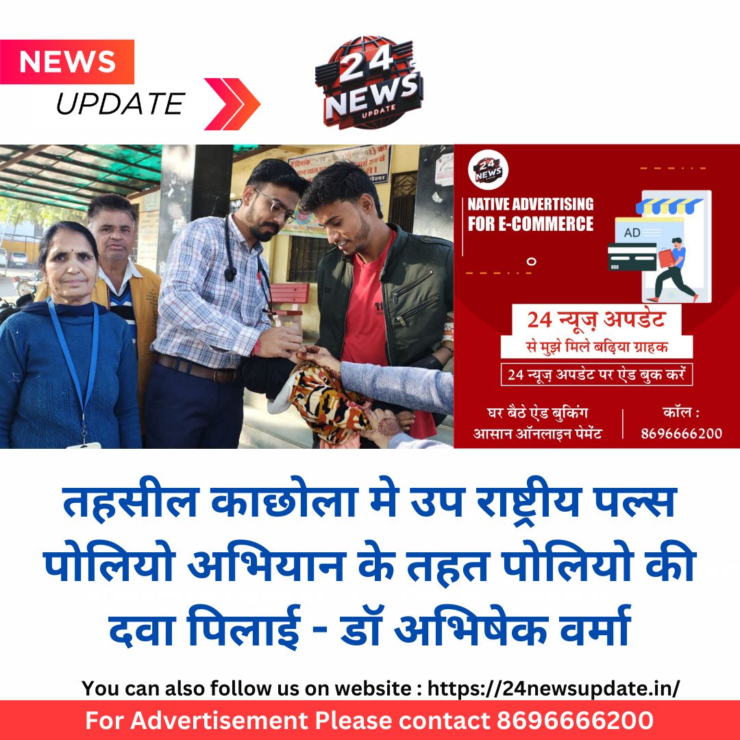 24 न्यूज़ अपडेट.सामुदायिक स्वास्थ्य केंद्र पर उप राष्ट्रीय पोलियो टीकाकरण अभियान का शुभारंभ चिकित्सा अधिकारी डॉ अभिषेक वर्मा ने बच्चों को पोलियो की दो बूंद खुराक पिलाकर शुभारंभ किया!