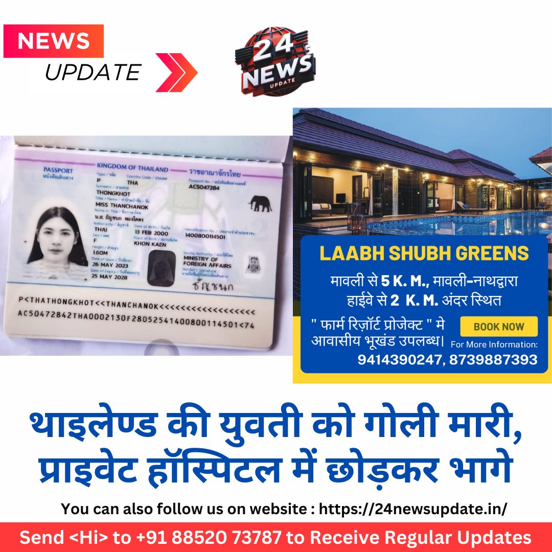 24 न्यूज़ अपडेट उदयपुर। उदयपुर शहर में आज सुबह एक विदेशी युवती को सरेआम गोली मारने की घटना से सनसनी फैल गई। युवती के हाथ के नीचे पसलियों में गोली लगी है व उसे तीन युवक एक निजी अस्पताल में छोड़कर भाग गए। वहां से मामले को संदिग्ध देख कर पुलिस को सूचित किया गया महाराणा भूपाल हॉस्पिटल ले जाकर भर्ती करवाया गया। युवती का इलाज चल रहा है। गोली अभी निकाले की प्रक्रिया चल रही है। बताया गया कि थाईलैंड की रहने वाली थाई थेम चुक पिछले 4 दिन से उदयपुर में है एक होटल में अपनी महिला दोस्त के साथ ठहरी हुई है। सुबह एसपी योगेश गोयल ने बताया कि युवती का नाम मिस थाई थेम चुक (24) है। वह थाईलैंड की रहने वाली है। युवती नशे में थी और पूछताछ में सहयोग नहीं किया। वह चार दिन से अपने दोस्त के साथ उदयपोल (माली कॉलोनी) स्थित होटल वीर पैलेस में ठहरी हुई है। दोस्त से भी पूछताछ की जाएगी। इसके अलावा सीसीटीवी फुटेज भी खंगाले जा रहे हैं। युवती के मोबाइल को भी देखा जा रहा है। हो सकता है, उससे कोई सुराग मिल जाए। सुबह 6 बजे एमबी हॉस्पिटल से सूचना मिली कि एक विदेशी युवती को घायल हालत में हॉस्पिटल लाया गया है। उसको पेसिफिक मेडिकल कॉलेज की एबुलेंस लेकर आई थी। पेसिफिक मेडिकल कॉलेज से पता लगा कि सुबह करीब चार से साढ़े चार बजे कुछ अज्ञात लड़के युवती को इमरजेंसी में छोड़कर गए थे। युवती रात को डेढ़ बजे किन लोगों के साथ गई थी। कौन लोग उसे हॉस्पिटल छोड़कर गए। आस-पास लगे सभी सीसीटीवी फुटेज को देखकर जांच की जा रही है। होटल के सीसीटीवी फुटेज में सामने आया है कि यह युवती शुक्रवार रात 1.30 बजे होटल से नीचे उतरी और 1.31 बजे बाहर खड़ी टैक्सी में बैठी और वहां से रवाना हो गई। एसपी ने अपील की कि होटल व्यवसायी, बार संचालक या किसी को भी युवती के बारे में कोई जानकारी हो तो पुलिस को बताएं। वह बाहर क्यों गई, अभी इसका खुलासा नहीं हुआ है। युवती की दोस्त ने पुलिस को बताया कि दोनों ने होटल में रात साढ़े 8 बजे खाना खाया था। डेढ़ बजे के करीब वह अपनी किसी दोस्त के साथ जाने की कहकर होटल से निकल गई थी।