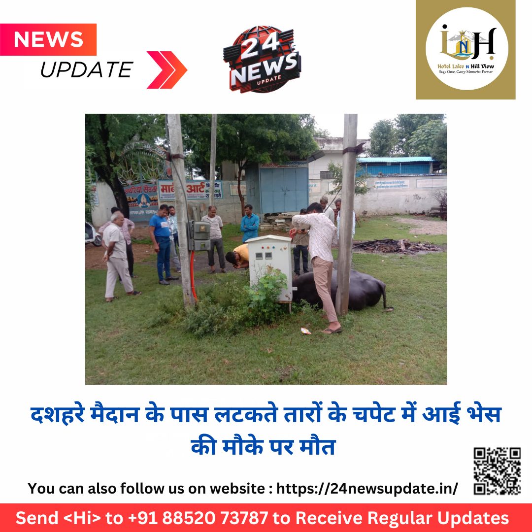24 न्यूज़ अपडेट निम्बाहेडा। नगर निम्बाहेडा में स्थित दषहरा मैदान से आगे रास्ते पर खाल के पास बिजली विभाग के ट्रांसफार्मर के नीचे लोहे की पेटी की आलमीरा के किवाड खुले रहने से उसमें लटकते विधुत तारों के कारण एक भेंस वंहा से गुजरते समय घास चरने लगी तो वहां लटकते तारों की चपेट में आने से मौत हो गई।