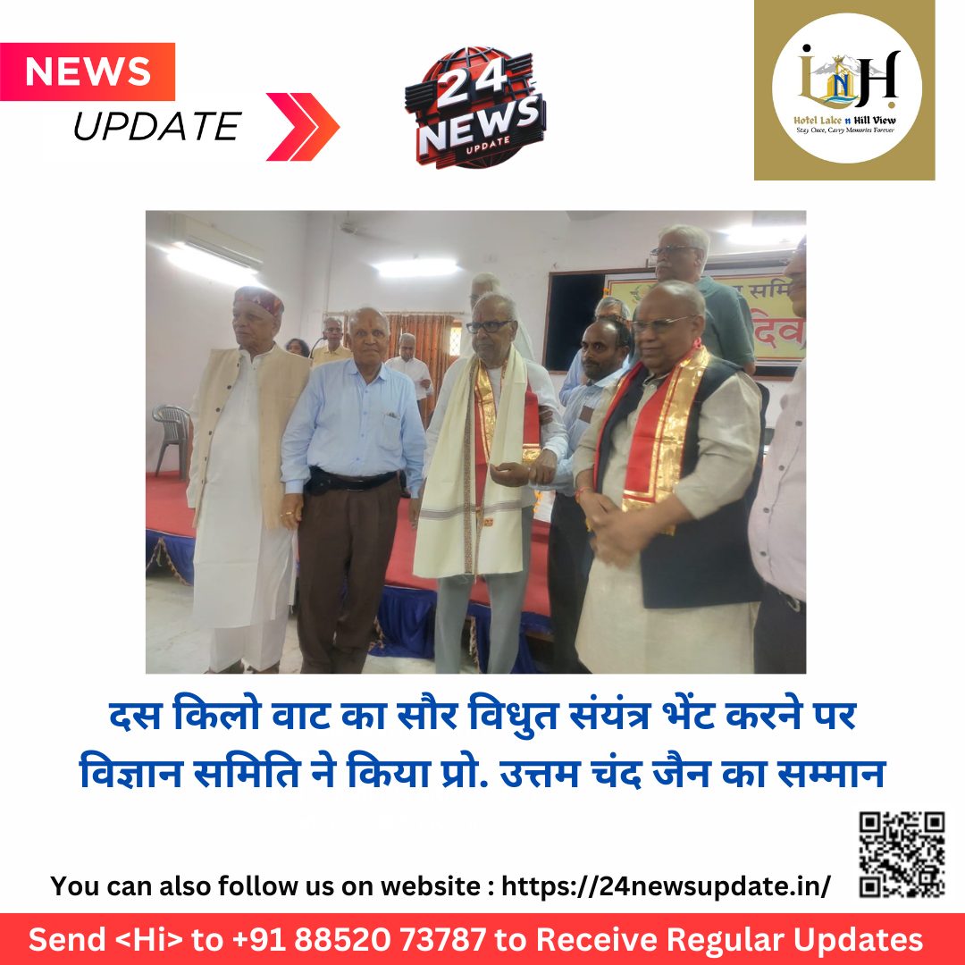 24 न्यूज़ अपडेट उदयपुर. विज्ञान समिति अशोक नगर परिसर उदयपुर को सौर विधुत समृद्ध करने हेतु प्रोफेसर उत्तम चंद जैन से भेंट स्वरुप चार लाख रुपये प्राप्त कर दस किलोवाट का सौर विधुत संयंत्र स्थापित किया गया है ।