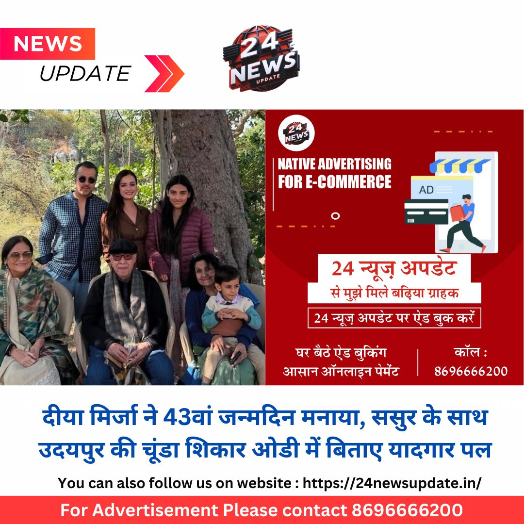 24 न्यूज़ अपडेट. उदयपुर बॉलीवुड सेलिब्रिटीज के लिए फेवरेट डेस्टिनेशन बनता जा रहा है इसी कड़ी में अब बॉलीवुड अभिनेत्री दिया मिर्जा ने अपना 43वां जन्मदिन बड़े ही खास और यादगार अंदाज में मनाया. उनके जन्मदिन के साथ उनके ससुर का जन्मदिन भी इसी दिन था इसे खास बनाने के लिए दिया मिर्जा ने उदयपुर की चूंडा शिकार ओडी में प्रकृति के बीच अपना बर्थडे सेलिब्रेट किया जहां वे अपने पूरे परिवार के साथ नजर आए. द अमेजॉन ने अपने सोशल मीडिया अकाउंट पर भी इसकी पोस्ट शेयर की