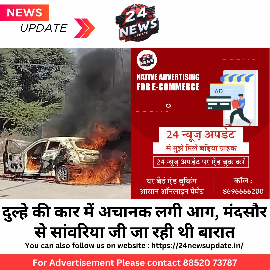 24 न्यूज अपडेट. निम्बाहेडा। निम्बाहेडा रेलवे ब्रिज के समिप निमच से निम्बाहेडा आ रहे मध्य प्रदेश के मंदसौर से सांवरियाजी सम्मेलन में शादी समारोह में जा रही बारात को सुबह एक बडा हादसा होते-होते बच गया। रेलवे ब्रिज के समिप सुबह साढे दस बजे दूल्हे की कार में अचानक आग लग गई । गनीमत यह रही कि सभी कार में सवार यात्री सुरक्षित बच गए। मध्य प्रदेश निवासी गलिया खेडी गांव से बारात में दूल्हा अनिल पुत्र कालूलाल अपने परिजनों पृथ्वीराज ,राजेन्द्र कुमार और कार चालाक विष्णुदास के साथ कार में सवार कल्याणपुरा गांव के समीप रेलवे ब्रिज के नीचे पहुंचते ही कार से वायरिंग झलने की बदबू आने लगी । जैसे ही कार को रोककर कार का बोनट खोला गया देखा तो कि वाहन में आग लग चुकी थी। त्वरित कार में सवार यात्री सभी तत्काल प्रभाव से कार से नीचे उतरकर दूर खडे होकर अपनी जान बचाई। जहां राहगीरों व उपस्थित लोगो ने तुरंत फायर बिग्रेड को सूचना देने पर मौके पर फायर बिग्रेड के फायरमेन ने पहुंचकर आग पर काबे पाया गया । आग की लापटों के साथ ही काला काला धुआं दुर-दुर तक दिखाई देने लगा मौके पर कार में लगी आग से अफरा-तफरी मच गई। पुलिस मौके पर पहुच कर घटनास्थल का निरिक्ष्ण किया और आवश्यक कार्रवाई की। घटना के बाद दुल्हे को वैकल्पिक व्यवस्था से सांवरियाजी सम्मेलन भेजा गया। इस हादसे में किसी की जा को कोई नुकसान नहीं पहुंचा।