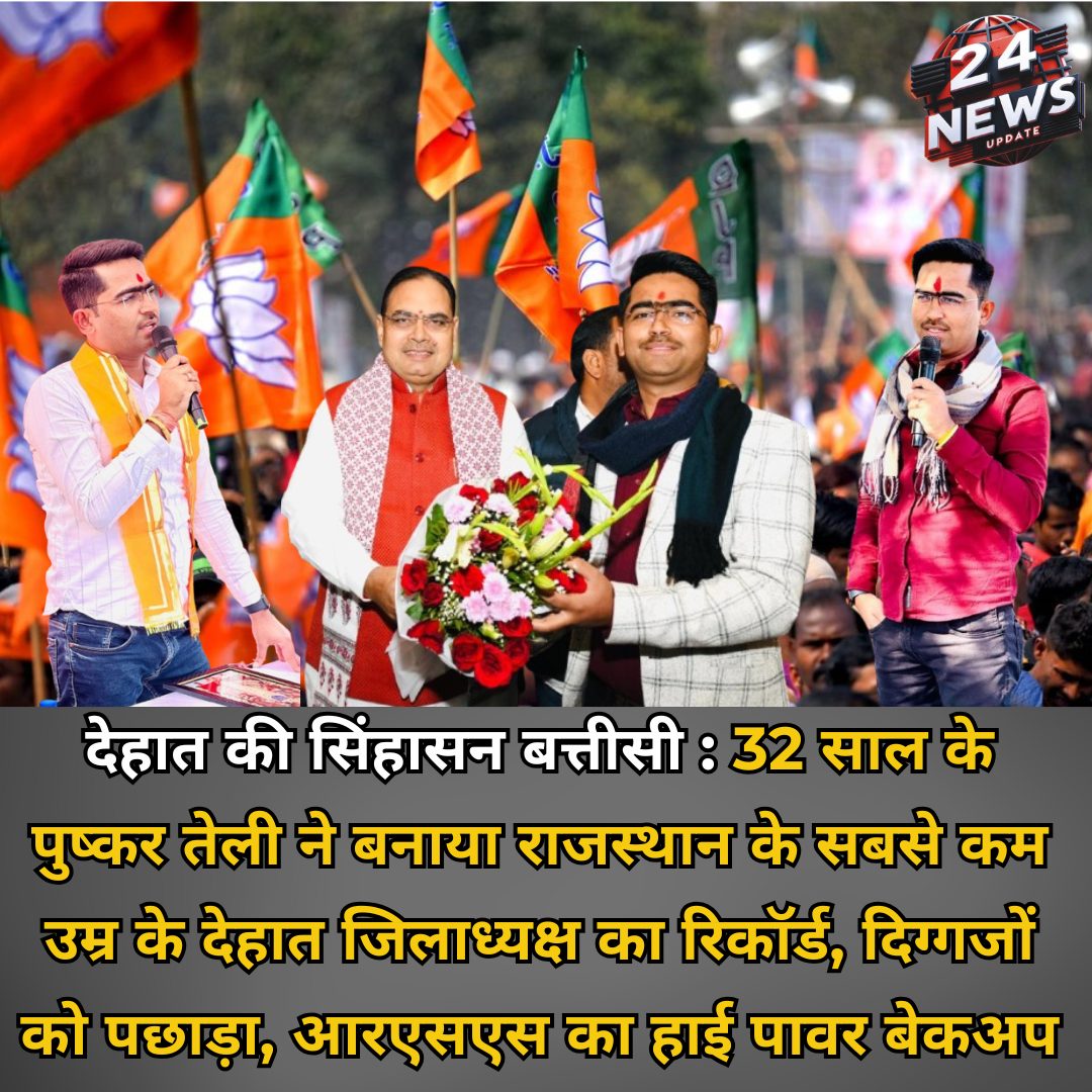 24 न्यूज अपडेट, उदयपुर। भाजपा के देहात जिलाध्यक्ष पद पर आज केवल 32 साल के उदयपुर के उप जिला प्रमुख के नाम की घोषणा ने सबको चौंका दिया। नई तरूणाई व युवा जोश के साथ पुष्कर के पास भाजपा पार्टी के अलावा आरएसएस का हाई पावर बेकअप भी है। पुष्कर ने आज देहात में बरसों से स्थापित कई नामी दिग्गजों को ‘‘पुश करते हुए’’ ‘‘धराशायी’’ कर दिया व कुर्सी पर उनके नाम की घोषणा संगठन पर्व में वरिष्ठ नेता राजेंद्रसिंह राठौड़ ने की। पुष्कर के नाम की घोषणा के बाद उदयपुर में पार्टी कार्यालय और गोगुंदा में उनके गृहक्षेत्र में दोहरा जश्न मनाया गया। पाटी में सबका साथ की व्यवस्था के तहत सभी पूर्व अध्यक्षों ने उनको खुलकर बधाई दी व उज्जवल भविष्य की कामना की। पुष्कर तेली ने आज राजस्थान में सबसे कम उम्र के भाजपा के देहात जिलाध्यक्ष बनने का भी एक नया रिकॉर्ड बनाया है। पुष्कर के जिलाध्यक्ष बनने की पीछे मायने ये भी हैं कि अब आरएसएस मेवाड़ में अपनी जड़ें और अधिक गहरी करने जा रहा है व उसके लिए उसे युवा जोश का साथ मिल रहा है। पुराने राजनेता सीधे शब्दों में कहें तो आज से ही मार्गदर्शक मंडल में डाल दिए गए हैं। युवाओं के सहारे जड़े जमाकर भाजपा पार्टी भी मेवाड़ में लंबी पारी की बिसात बिछा रही है।