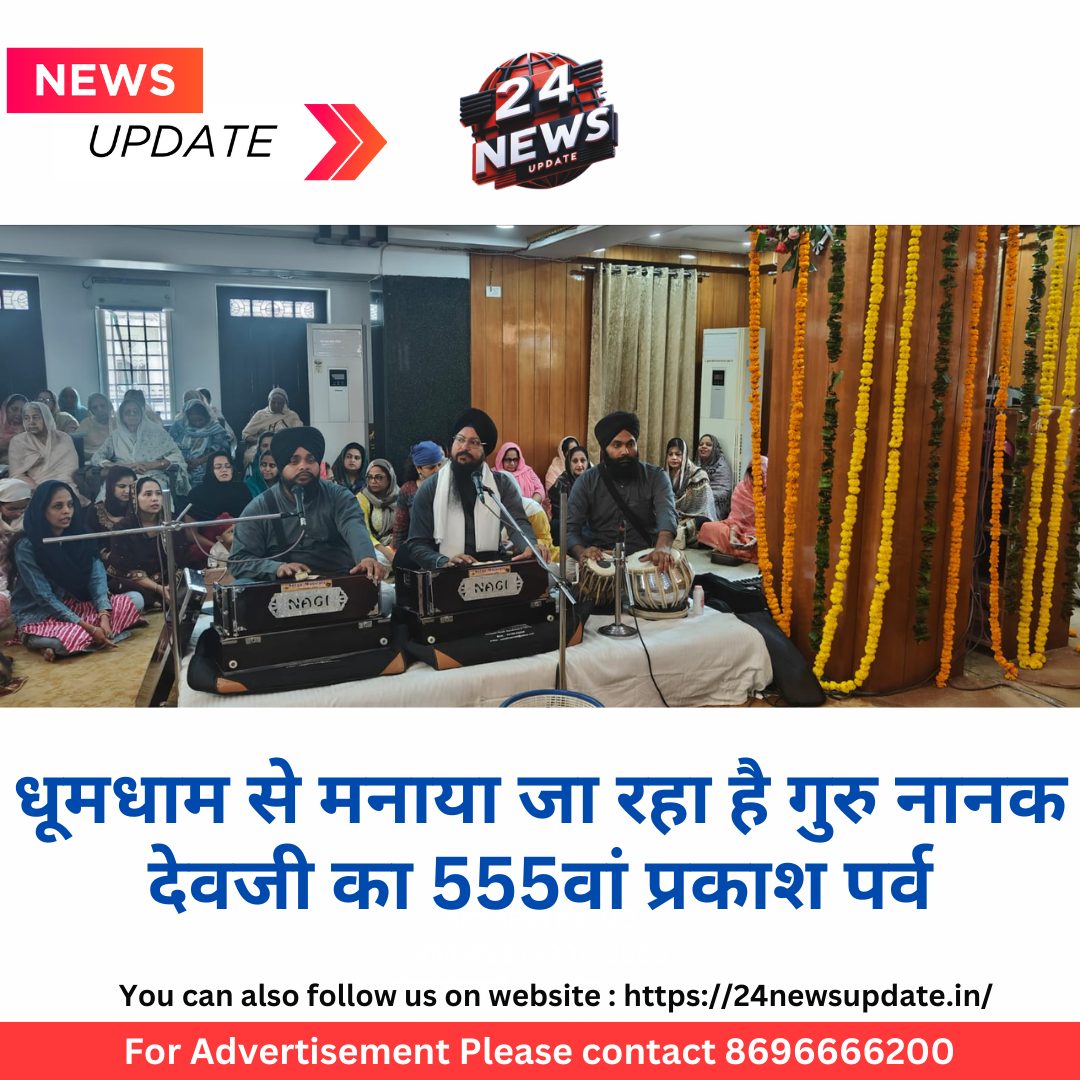 24 न्यूज अपडेट.उदयपुर। गुरु नानक देवजी का 555वां प्रकाश पर्व बडी़ श्रद्धा पूर्वक मनाया जा रहा है। सुबह से ही विशेष कीर्तन के दीवान सजाए गए। साथ ही संगत गुरु के लंगर की भी सेवा कर रही है। लेकसिटी में पिछले काफी दिन से प्रकाश पर्व की खुशी में प्रभात फेरी के आयोजन भी हुए जिनमें छोटे-छोटे बच्चों ने गुरुवाणी कीर्तन भी किया। शहर के सभी गुरूद्वारों में आयोजन हो रहे हैं। उदयपुर में गुरुद्वारा अध्यक्ष धर्मवीर सिंह सलूजा ने बताया कि सुबह 5 बजे से लंगर बनाने की सेवा शुरू हो गयी थी। सुबह 10 बजे से 10़ 30 बजे तक बच्चों का प्रोग्राम हुआ। इसके बाद 11 बजे तक ज्ञानी अजीत सिंह ने, 12 बजे तक महेंद्र सिंह का रागी जत्था, 12 से 1.30 बजे तक सुबा सिंहजी ने शब्द कीर्तन द्वारा संगत को निहाल किया। शाम को 4 बजे तक गुरू का अटूट लंगर बरताया गया। शाम का दीवान 7 बजे से आरंभ हुआ व रात 11 बजे तक चलेगा। इसके बाद भव्य आतिशबाजी की जाएगी। गुरु नानक देव के 555वीं जयंती पर शुक्रवार को गुरुद्वारों में विशेष कार्यक्रम आयोजित किए।