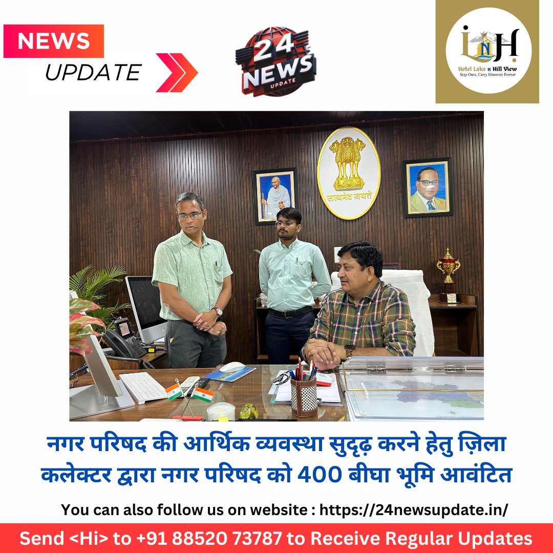 24 न्यूज़ अपडेट शाहपुरा. शाहपुरा ज़िले के विकास को ध्यान में रखते हुए पूर्व में ज़िला कलेक्टर राजेंद्र सिंह शेखावत द्वारा मास्टर प्लान बाबत बैठक आयोजित की गई थी | आगामी समय में ज़िले की प्रगति के उद्देश्य से मास्टर प्लान में संभावित बदलाव को ध्यान में रखते हुए नगर परिषद की वित्तीय व्यवस्था सुदृढ़ करने के लिए ज़िला कलेक्टर शेखावत द्वारा नगर परिषद को 400 बीघा भूमि आवंटित की गई है |ज़िला कलेक्टर शेखावत के निर्देशानुसार नगर परिषद आवंटित भूमि को आवारा पशु प्रबंधन करने के लिए उपयोग में लेने के साथ ~ साथ भूमि के मद्देनज़र प्रगतिशील रणनीति बनाकर आने वाले समय में बसावट के लिए कॉलोनीज, मेडिकल कॉलेज सहित विभिन्न शैक्षणिक संस्थान , मनोरंजन स्थल आदि विकसित कर सकेगी