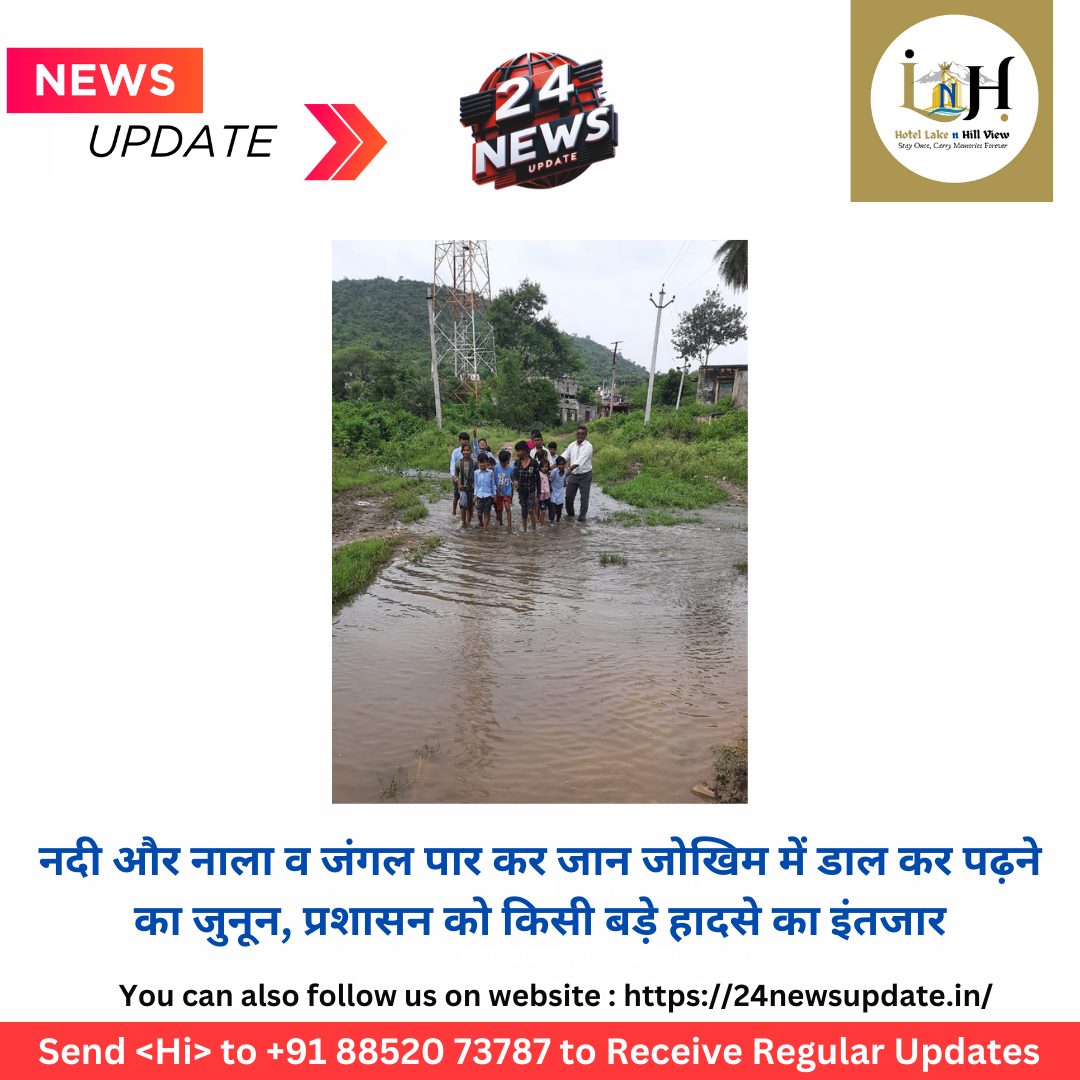 24 न्यूज़ अपडेट निम्बाहेडा। बिनोता कस्बे के राजकीय उच्च प्राथमिक संस्कृत विद्यालय में पढ़ने वाले नन्हे मुन्हे बच्चों में पढ़ने के प्रति इतना जुनून है कि विद्यालय जाने वाले रास्ते मे आने वाले नदी व,नाला पार कर जंगली, झाड़ियों में जहरीले जानवरो के काटने के भय को नजरअंदाज कर जान जोखिम में डालते हुवे विद्यालय में पढ़ने जा रहे है