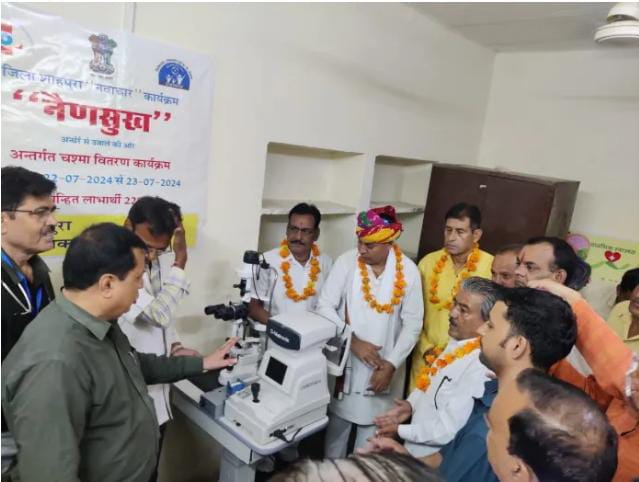 24 न्यूज अपडेट शाहपुरा . जिला मुख्यालय के उपखंड क्षेत्र सामुदायिक स्वास्थ्य केंद्र जहाजपुर में विधायक गोपीचंद मीणा के कर कमलों से जिला प्रशासन द्वारा चलाए जा रहे नवाचारनैन सुख कार्यक्रम के अंतर्गत निशुल्क चश्मा वितरण कार्यक्रम की शुरुआत की गई आंखो की जांच हेतु नई मशीन और उपकरण का लाभआमजन को दिलवाने और चिकित्सालय में आमजन कीसहायता अनुसार जल्द ही आंखों के ऑपरेशन शुरू करवाने के विधायक मीणा ने निर्देश दिये भाजपा नगर महामंत्री अनिल जोशी ने बताया कि इस दौरान मुख्य चिकित्सा एवम स्वास्थ्य अधिकारी डॉ विष्णु दयाल मीणा ने सभी चिकित्सा अधिकारियों और कार्मिकों को आम जन सहायतार्थ तत्पर रहने एवम अपनी जिम्मेदारी पूर्ण रूप से निभाने के निर्देश दिए साथ ही काम नहीं करने वाले या निर्देशों का पालन नहीं करने वालो को चार्जशीट और एपीओ करने की चेतावनी दी ।इस दौरान ब्लॉक मुख्य चिकित्सा अधिकारी डॉ अशोक जाट, चिकित्सा अधिकारी प्रभारी डा नईम अख्तर, नेत्र चिकित्सकडा दिलीप मीणा, नेत्र सहायक दिनेश कुमार, अन्य चिकित्सा अधिकारी, कार्मिक और उपखंड क्षेत्र के भाजपा कार्यकर्ता चेयरमैन नरेश मीणा,पूर्व पार्षद, वेदप्रकाश खटीक कमलबांगड़, बृजराज सिंह, भेरू लाल टांक,नंद भंवर सिंह, राजीव कांतिया, रामप्रसाद रैगर, कैलाश टेपण,सौरभ मीणा, दुर्गा लाल माली, पूर्व पार्षद महेंद्र खटीक,परमेंद्र सुवालका, अमित बिरला आदि उपस्थित रहे Share this: Share on X (Opens in new window) X Share on Facebook (Opens in new window) Facebook More Email a link to a friend (Opens in new window) Email Share on WhatsApp (Opens in new window) WhatsApp Like this:Like Loading... Related Discover more from 24 News Update Subscribe to get the latest posts sent to your email. Type your email… Subscribe Post navigation एमडीएस स्कूल में गुरु पूर्णिमा कार्यक्रम का गरिमामय आयोजन गंगु कुंड परिसर में 26 लाख रूपये के निर्माण कार्य का हुआ शुभारंभ