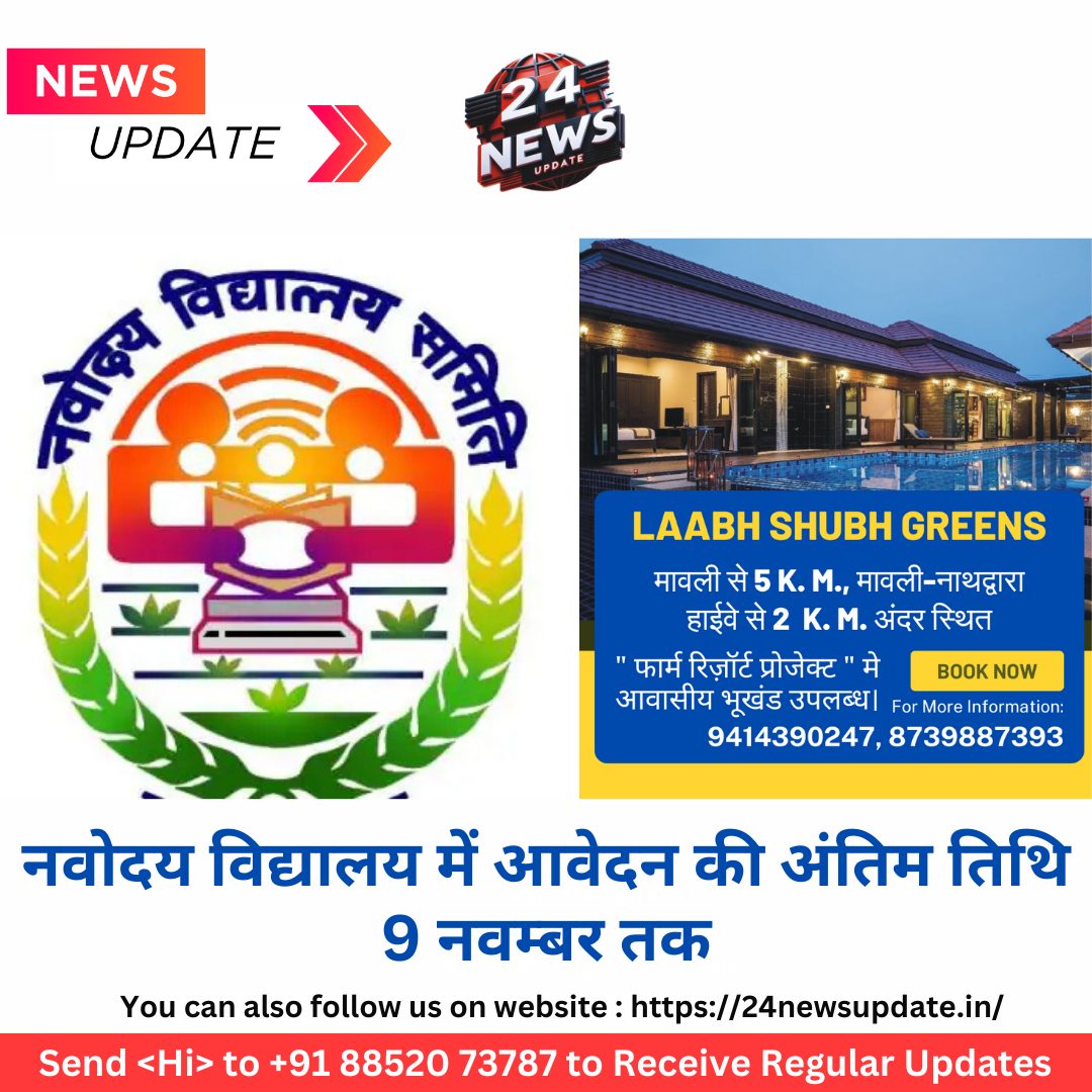 24 न्यूज़ अपडेट डूंगरपुर। पीएम श्री जवाहर नवोदय विद्यालय ठाकरडा जिला डूंगरपुर के लिए सत्र 2025-26 में जवाहर नवोदय विद्यालयों की कक्षा 9 एवं 11 में रिक्त स्थानों पर लेटरल एंट्री टेस्ट-2025 के प्रवेश के लिए ऑनलाइन आवेदन की अंतिम तिथि 9 नवम्बर तक बढ़ाई गई है। जवाहर नवोदय विद्यालय ठाकरड़ा के प्राचार्य ने बताया कि सत्र 2025-26 में जवाहर नवोदय विद्यालयों की कक्षा 9 एवं 11 में रिक्त स्थानों पर लेटरल एंट्री टेस्ट-2025 के माध्यम से प्रवेश के लिए ऑनलाइन आवेदन की अंतिम तिथि 9 नवम्बर तक बढ़ाई गई है। ज्ञातव्य हो कि सत्र 2024- 25 में कक्षा 10 में अध्ययनरत विद्यार्थी कक्षा 11 के लिए व कक्षा 8 में अध्ययनरत विद्यार्थी कक्षा 9 के लिए आवेदन कर सकते हैं। जिन विद्यार्थियों का जन्म 1 जून 2008 से 31 जुलाई 2010 के बीच में हुआ है वे कक्षा 11 के लिए व जिनका जन्म 1 मई 2010 व 31 जुलाई 2012 (दोनों तिथि सम्मिलित) के बीच में हुआ है वे कक्षा 9 के लिए आवेदन कर सकते हैं। विद्यार्थी डूंगरपुर जिले के किसी मान्यता प्राप्त विद्यालय में अध्ययनरत होना चाहिए। अभ्यार्थी लिंक Class 9 LEST 2025: https://cbseitms.nic.in/2024/nvsix Class 11 LEST 2025 : https://cbseitms.nic.in/2024/nvsix पर जाकर निशुल्क आवेदन कर सकते है।