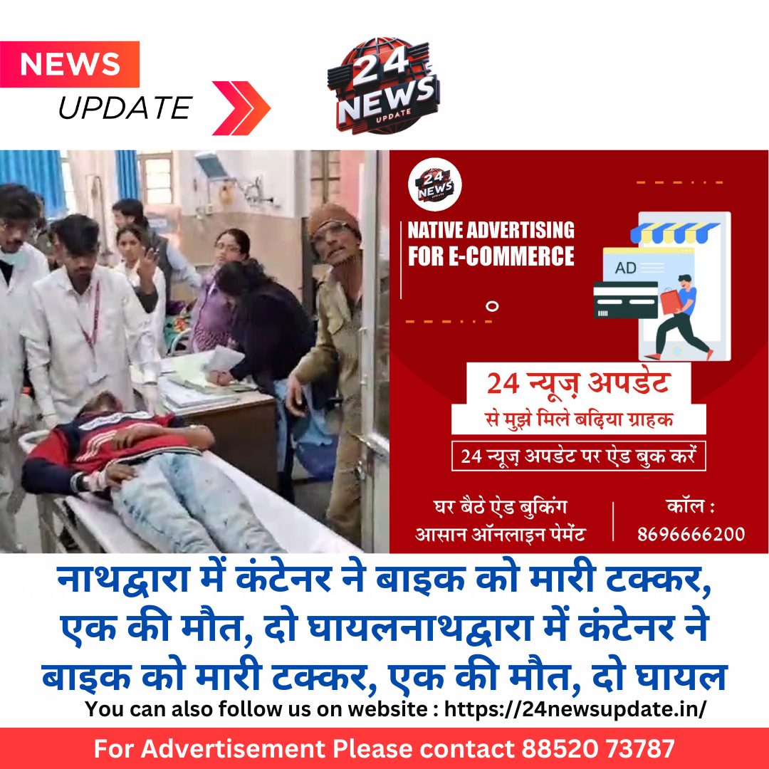 24 न्यूज़ अपडेट नाथद्वारा(राजसमंद): थाना क्षेत्र के कर्जिया घाटी के समीप नेशनल हाईवे संख्या आठ पर कंटेनर की चपेट में आने से एक बाइक सवार की मौत हो गई. वहीं, 2 अन्य घायल हो गए. तीनों घायलों को जिला अस्पताल ले जाया गया, जहां एक व्यक्ति की मौत हो गई, दो अन्य का उपचार जारी है.