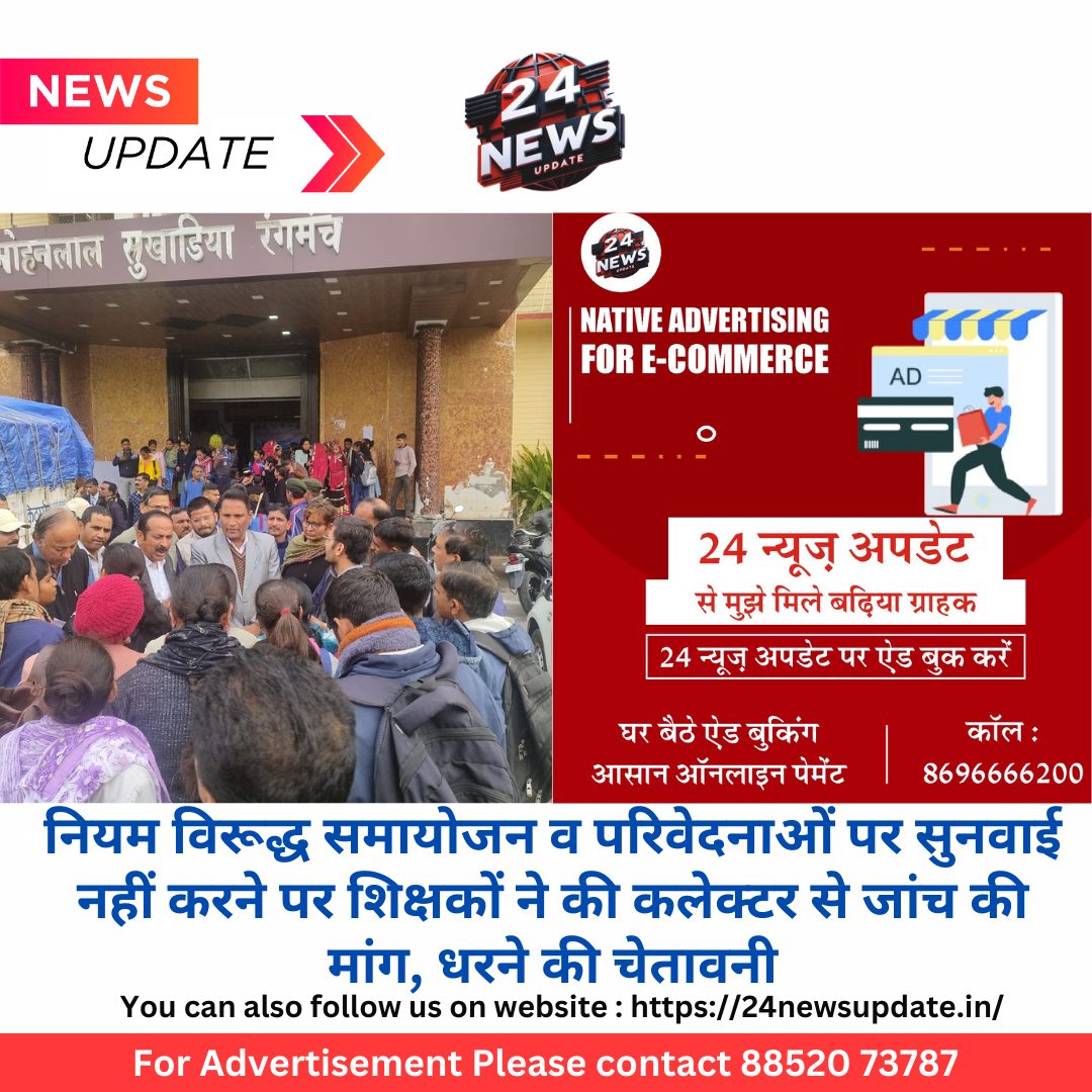 24 न्यूज़ अपडेट उदयपुर। अधिशेष शिक्षको के समायोजन से पीड़ित हुए शिक्षकों द्वारा राजस्थान पंचायती राज एंव माध्यमिक शिक्षक संघ के प्रदेश अध्यक्ष शेर सिंह चौहान के नेतृत्व मे परिवेदना निस्तारण न होने पर सेकड़ो शिक्षको ने जिला शिक्षा अधिकारी कार्यालय माध्यमिक मे आक्रोश व्यक्त किया , कार्यालय मे जिलाशिक्षा अधिकारी लोकेश भारती नही होने व संस्थापन कार्यालय मे प्रभारी द्वारा ताला लगा बाहर चले जाने पर शिक्षको ने भयंकर नारे बाजी कर शिक्षको द्वारा दी परिवेदना पर की गई कार्यवाही व भेजे गाये प्रस्ताव की कॉपी दिखाने पर अड गए। उसके बाद सभी पीड़ित शिक्षक मुख्य जिला शिक्षा अधिकारी उदयपुर श्री महेंद्र कुमार जैन से सुखाड़िया रंगमंच पर पहुंचे चूंकि ये परिवेदना निस्तारण समिति के अध्यक्ष थे जब प्रदेश अध्यक्ष शेर सिंह चौहान द्वारा शिक्षकों की परिवेदना निस्तारण क्यो नही हुई पूछा तो उनका कोई संतोष प्रद जबाब नही मिला ,सभी शिक्षिकाओ ने नियम के तहत आने व परिवेदना निस्तारण की मांग रखी, शिक्षिका सुमित्रा जिनका पाथरपाड़ी कोटडा से 50 ाउ दुर रणीया गेंग के गाँव कुकावास कोटड़ा भेजने पर रोते हुए मुख्य जिला शिक्षा अधिकारी को अपनी व्यथा सुनाई जबकि पास के विधालय मे पद रिक्त था। इसी प्रकार वर्षा गमेती अध्यापिका के पति आर्मी मेन होकर गुवाहावटी मे पोस्टेड है उनको राज्य सरकार के आदेश अनुसार पास मे समायोजन करने की बजाय 50 ाउ दूर जाबला कर दिया। करुणा पांड्या विधवा होते हुए 40 ाउ दूर अमर पूरा कर दिया इसी प्रकार ममता कटारा का 120 ाउ गुडेल समायोजन कर दिया इसी प्रकार सभी ने अपनी व्यथा व नियम की जानकारी मुख्य जिला शिक्षा अधिकारी के समक्ष रखी उनपर काफी दबाब बनाया उसके बाद परिवेदना ली।
